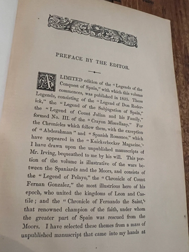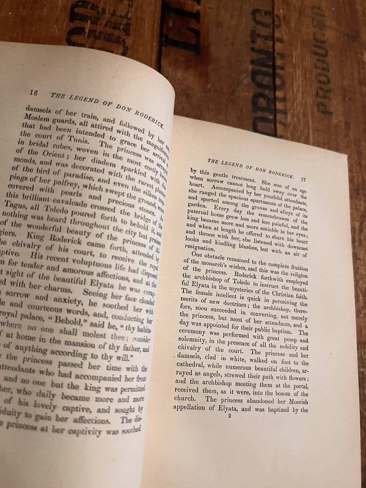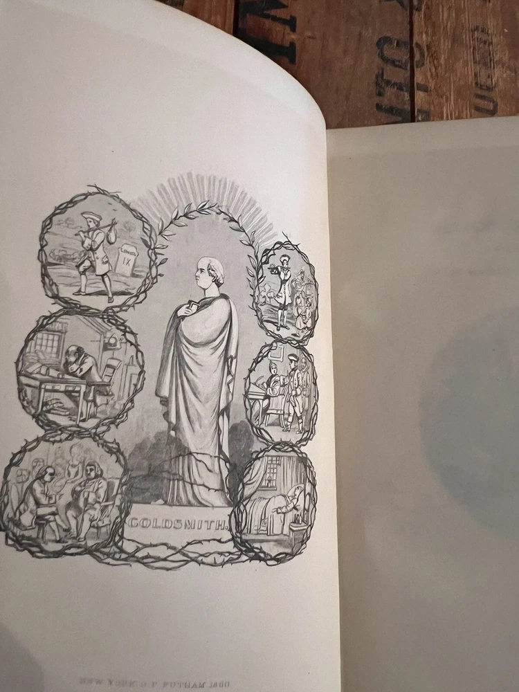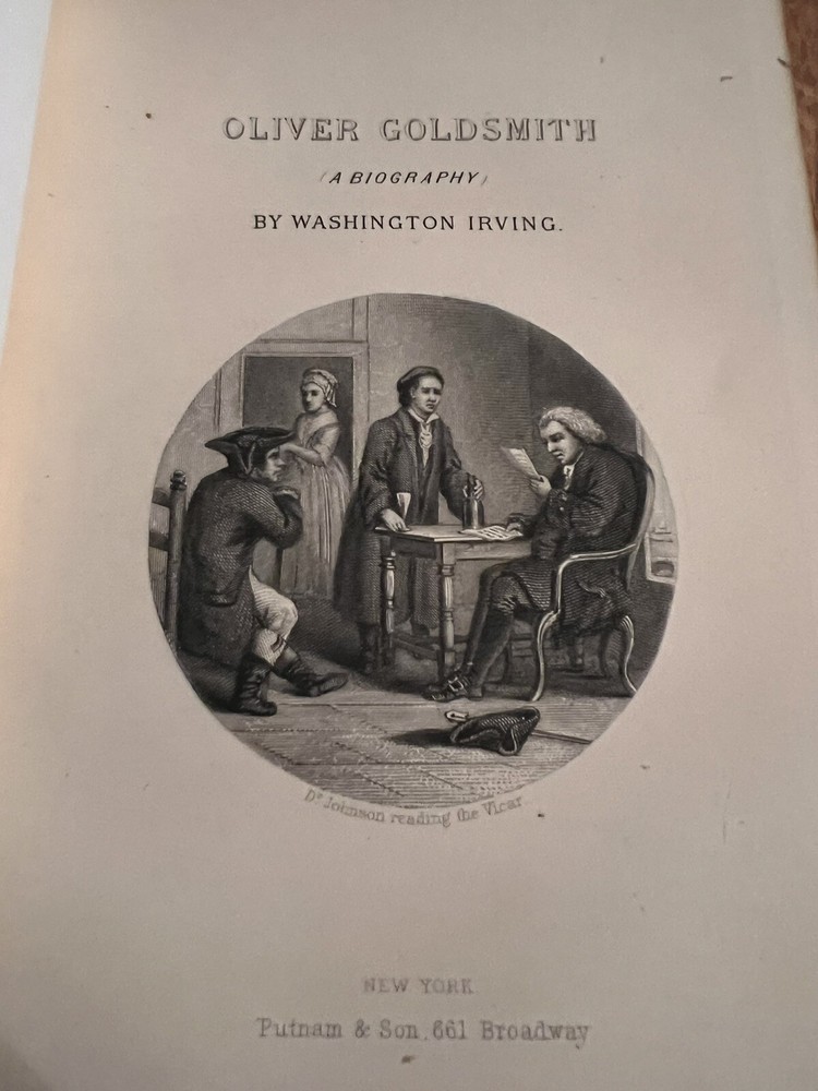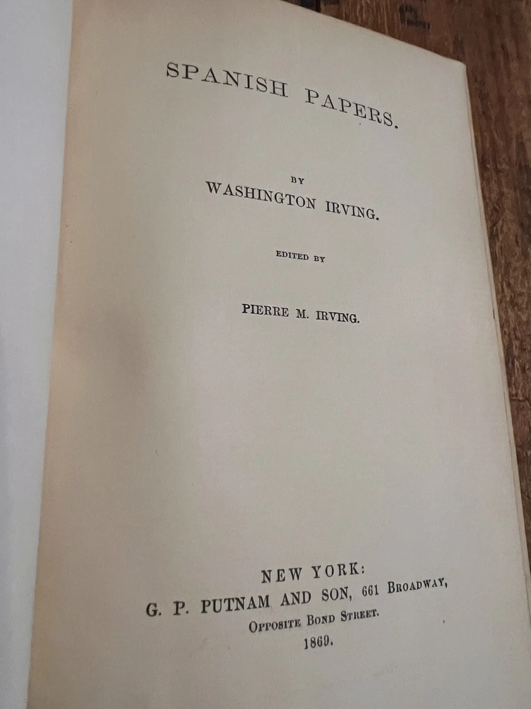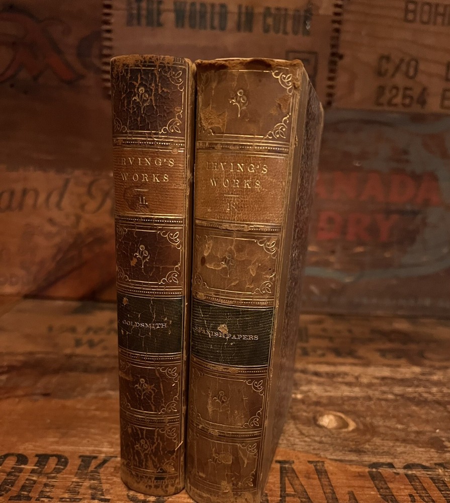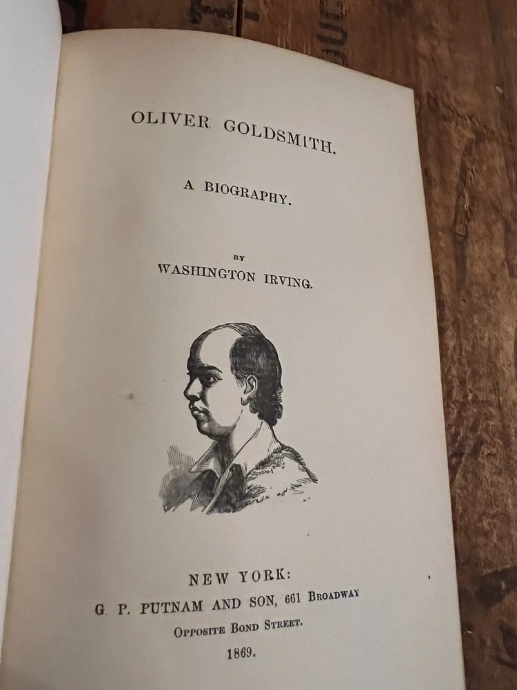 Item : Book Set (1) OLIVER GOLDSMITH (2) SPANISH PAPERS Age : c. 1969 By : Washington Irving Publisher : G.P. Putnam And Son; NY US Condition : Fair Dimensions : (1) 7 1/2” x 5 1/4” x 1 1/4” (2) 7 1/2” x 5 1/4” x 1 1/2” Notes : (1) Hard cover, leather spine, 427 pages, some illustrations, external wear. (2) Hardcover, leather spine, 531 pages, external wear. Sold as a set. Estate lot purchase. Come well packaged in sealed acid free clear sleeve.