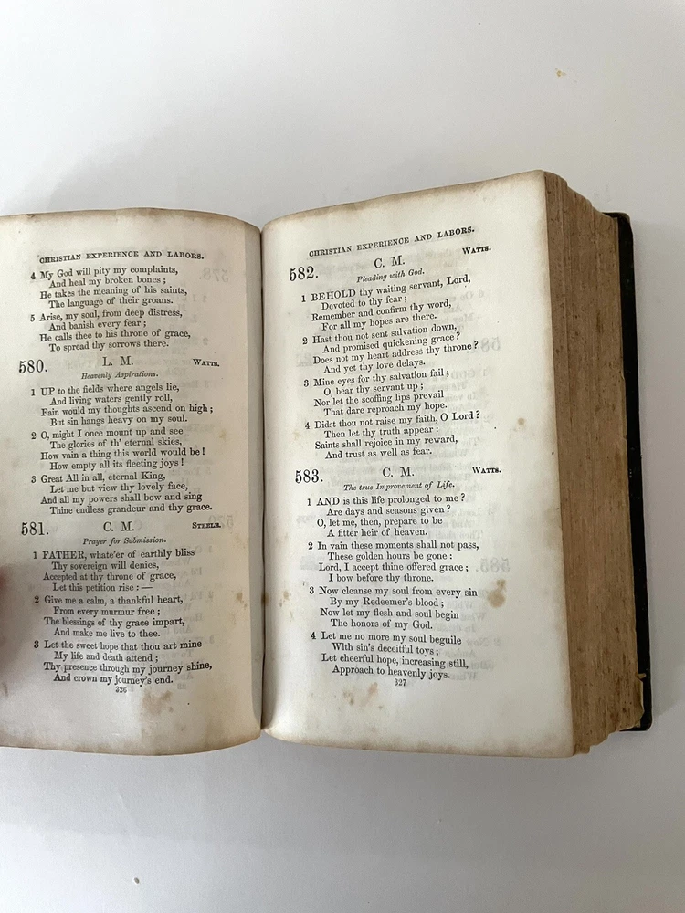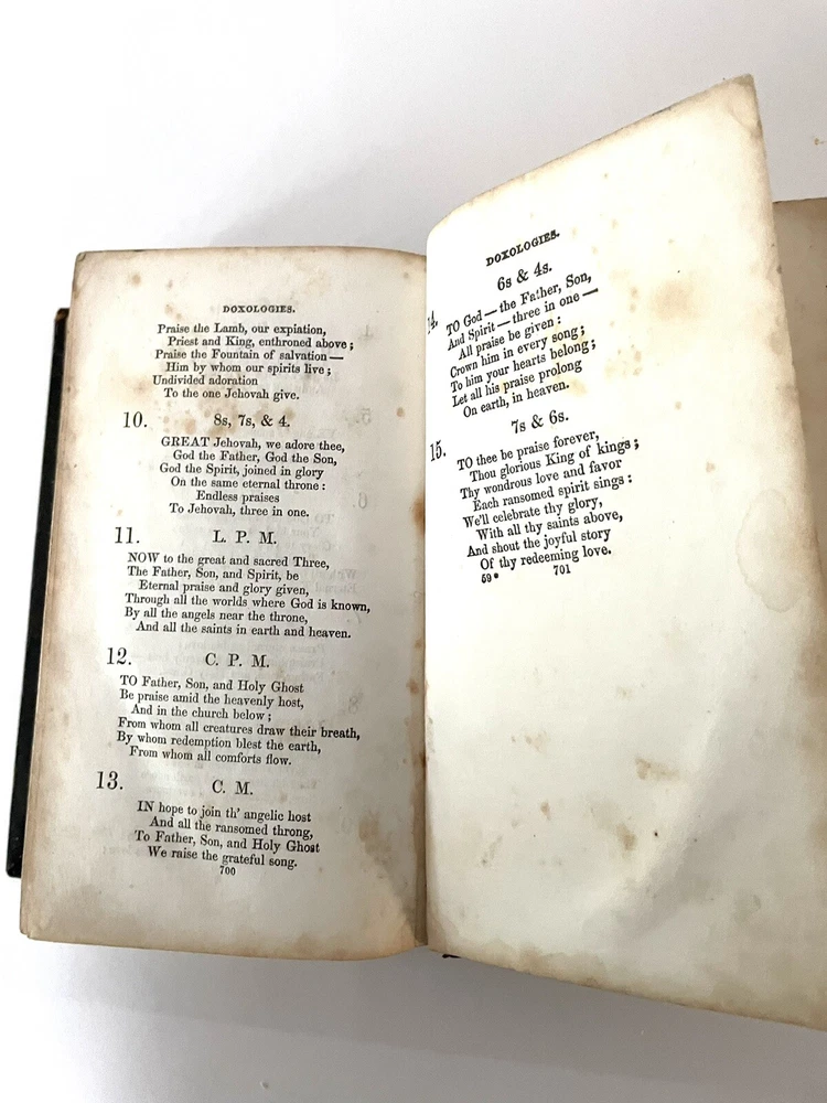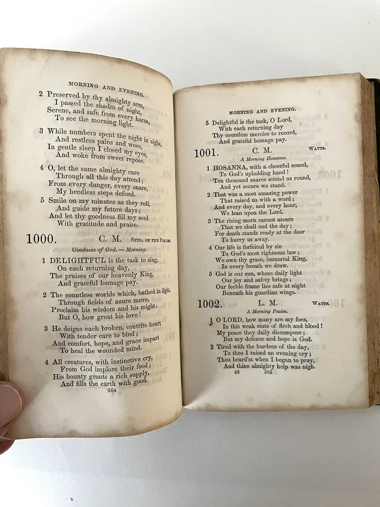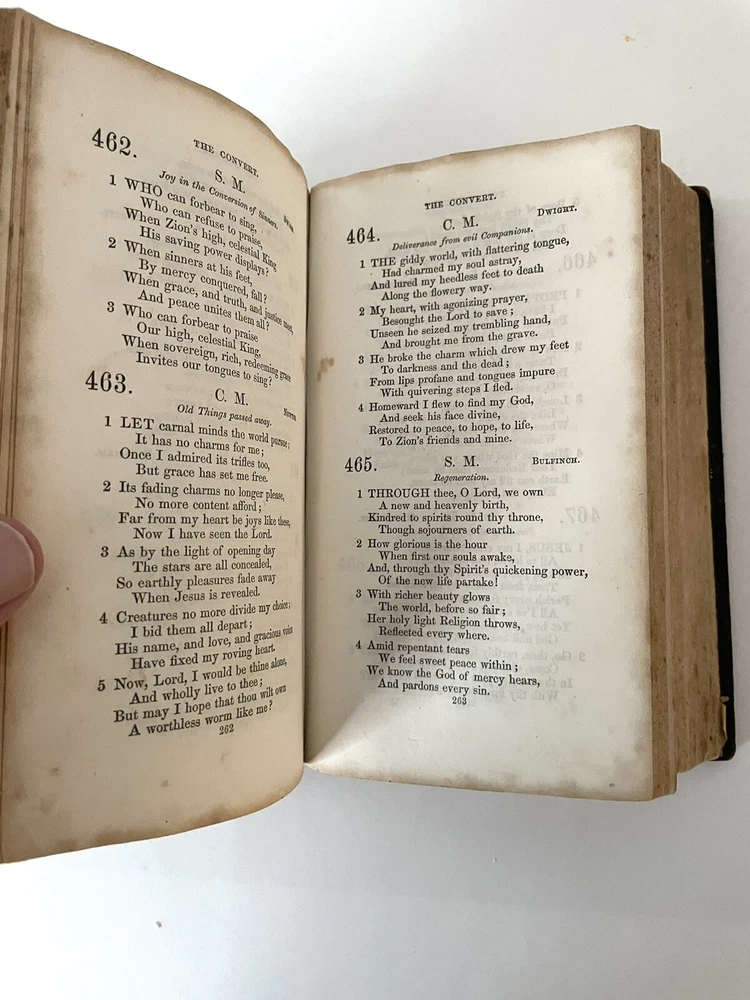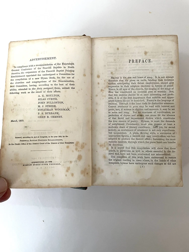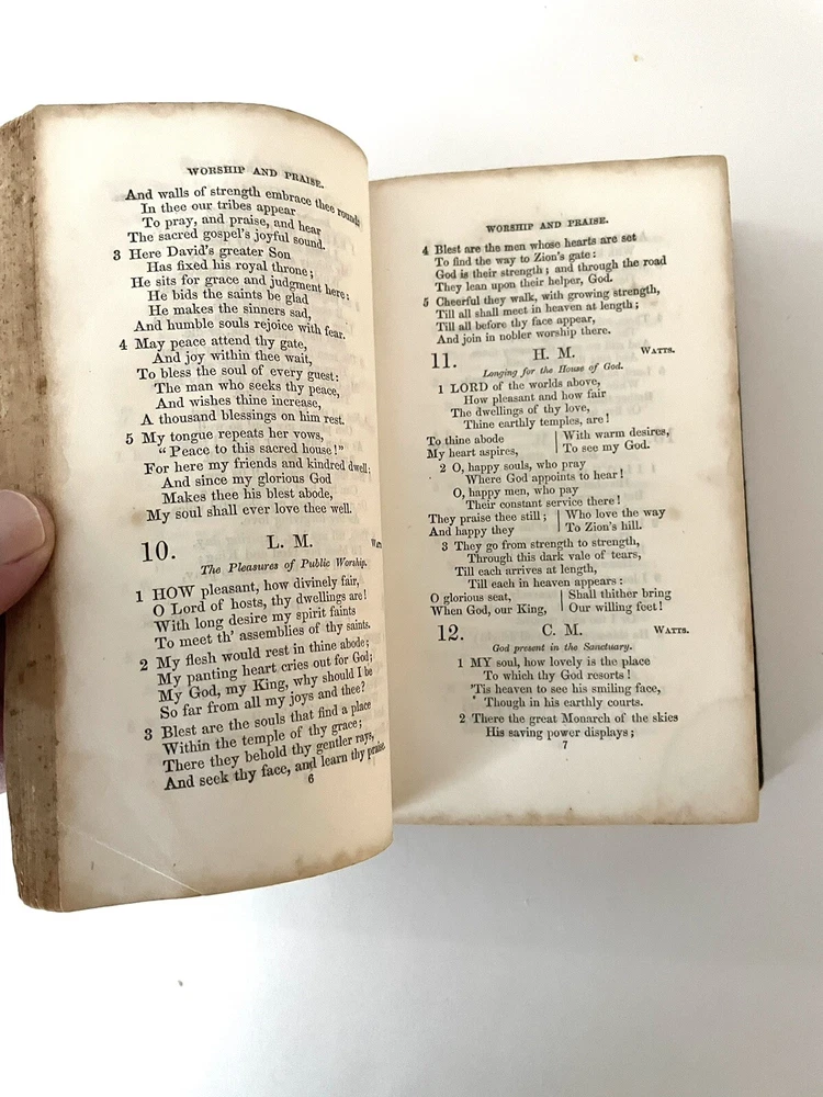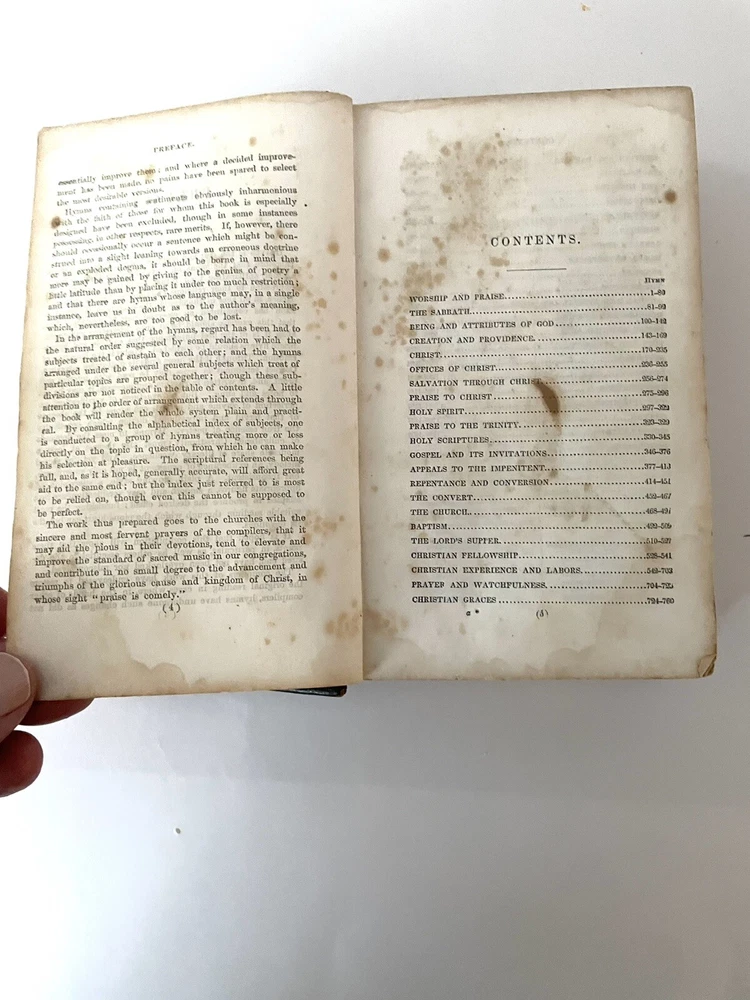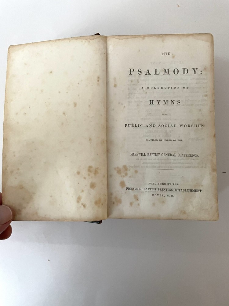 What a great find in this American Civil War by Era 1853 volume of Psalmody , Freewill Baptist General Confrence edition. This book is in the good condition considering its age. Part of spine cover is missing but spine is good and the tooled leather covers are a great addition to this special religious volume . There is a bit of foxing throughout which is age appropriate The book’s pages are clean and readable with no rips. There is minor fraying on the covers but nothing serious. This is a must have for collectors of antiquarian religious collectibles. Measures 7x4.25x2 inches.