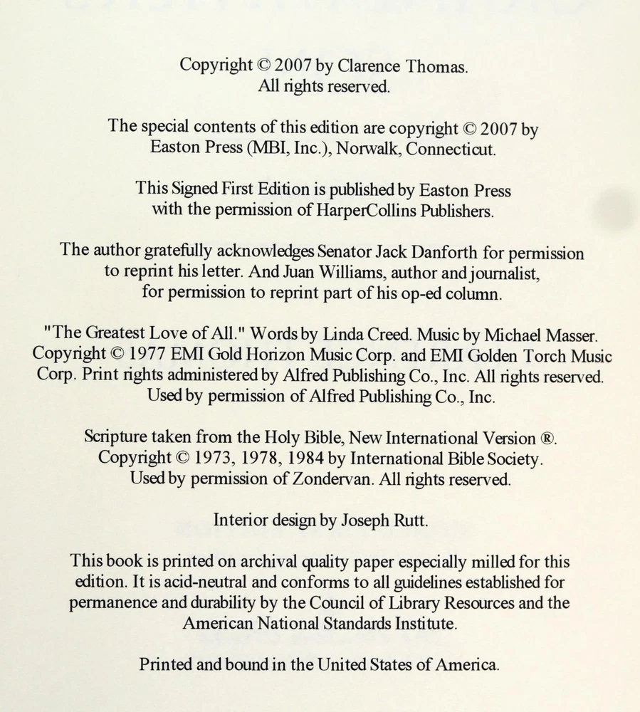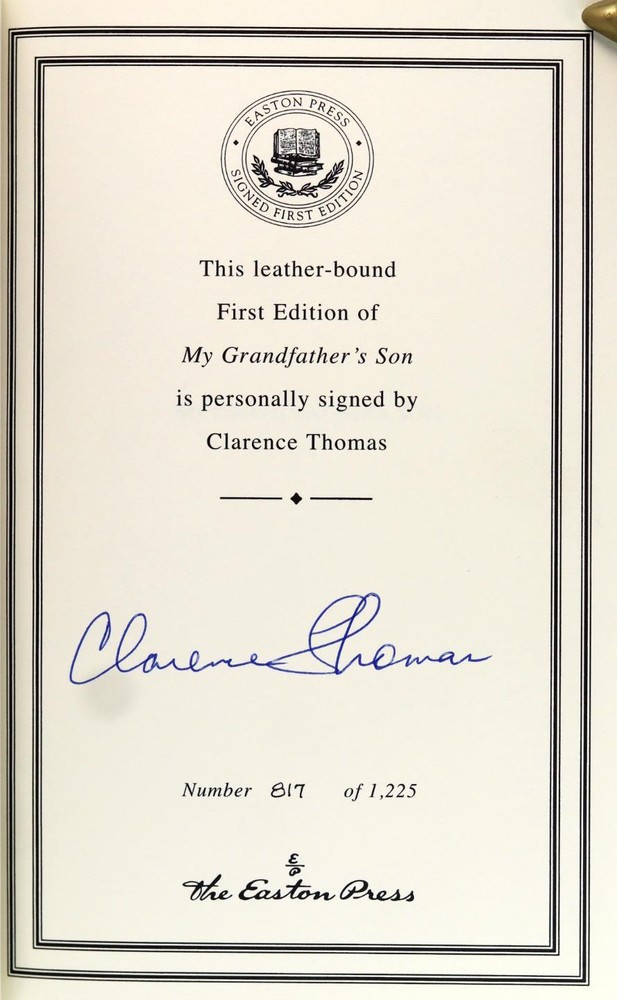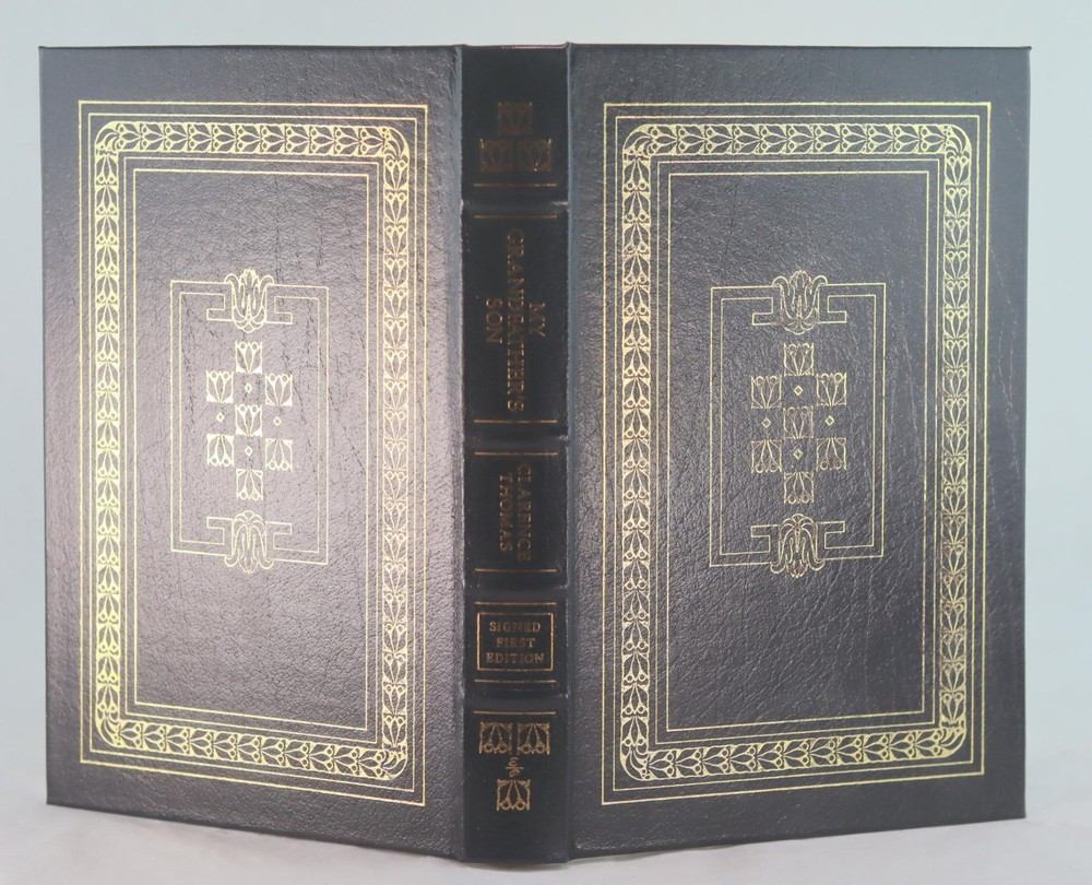 Leather. 8vo. Published by The Easton Press, Norwalk, CT. 2007. 314 pgs. Signed by Clarence Thomas on the limitation page. No. 815 of a limited edition of 1225 copies. First Edition/First Printing. Bound in full leather with raised bands to the spine ends. Decorated gilt stamped boards and spine with all edges gilt. Silk moiree endsheets with silk bookmark sewn into the binding. Boards have light shelf-wear present to the extremities. Easton bookplate present to the front pastedown. Text is clean and free of marks. Binding tight and solid. Provocative, inspiring, and unflinchingly honest, My Grandfather's Son is the story of one of America's most remarkable and controversial leaders, Supreme Court Justice Clarence Thomas, told in his own words. Thomas speaks out, revealing the pieces of his life he holds dear, detailing the suffering and injustices he has overcome, including the polarizing Senate hearing involving a former aide, Anita Hill, and the depression and despair it created in his own life and the lives of those closest to him. In this candid and deeply moving memoir, a quintessential American tale of hardship and grit, Clarence Thomas recounts his astonishing journey for the first time. Clarence Thomas Signed 2007 Easton Press Leather Binding My Grandfather's Son Clarence Thomas Signed 2007 Easton Press Leather Binding My Grandfather's Son Description Up For Sale Today is My Grandfather's Son by Clarence Thomas Leather. 8vo. Published by The Easton Press, Norwalk, CT. 2007. 314 pgs. Signed by Clarence Thomas on the limitation page. No. 815 of a limited edition of 1225 copies. First Edition/First Printing. Bound in full leather with raised bands to the spine ends. Decorated gilt stamped boards and spine with all edges gilt. Silk moiree endsheets with silk bookmark sewn into the binding. Boards have light shelf-wear present to the extremities. Easton bookplate present to the front pastedown. Text is clean and free of marks. Binding tight and solid . Provocative, inspiring, and unflinchingly honest, My Grandfather's Son is the story of one of America's most remarkable and controversial leaders, Supreme Court Justice Clarence Thomas, told in his own words. Thomas speaks out, revealing the pieces of his life he holds dear, detailing the suffering and injustices he has overcome, including the polarizing Senate hearing involving a former aide, Anita Hill, and the depression and despair it created in his own life and the lives of those closest to him. In this candid and deeply moving memoir, a quintessential American tale of hardship and grit, Clarence Thomas recounts his astonishing journey for the first time. OUR MISSION STATEMENT: Our goal is to provide the best books for the lowest prices. We understand that you have more choices than ever to buy books, so we strive to provide the best service, accurate descriptions, the cheapest shipping and the best customer service in the realm of bookselling. Thank you for visiting this listing and we hope to see you again soon! Book formats and corresponding sizes Name Abbreviations Leaves Pages Approximate cover size (width × height) inches cm folio 2º or fo 2 4 12 × 19 30.5 × 48 quarto 4º or 4to 4 8 9½ × 12 24 × 30.5 octavo 8º or 8vo 8 16 6 × 9 15 × 23 duodecimo or twelvemo 12º or 12mo 12 24 5 × 7⅜ 12.5 × 19 sextodecimo or sixteenmo 16º or 16mo 16 32 4 × 6¾ 10 × 17 octodecimo or eighteenmo 18º or 18mo 18 36 4 × 6½ 10 × 16.5 trigesimo-secundo or thirty-twomo 32º or 32mo 32 64 3½ × 5½ 9 × 14 quadragesimo-octavo or forty-eightmo 48º or 48mo 48 96 2½ × 4 6.5 × 10 sexagesimo-quarto or sixty-fourmo 64º or 64mo 64 128 2 × 3 5 × 7.5 ALL ITEMS ARE DESCRIBED TO THE BEST OF MY ABILITY! PLEASE CHECK ALL THE PHOTOS BEFORE BIDDING! PAYMENT IS DUE WITHIN FOUR (4) DAYS OF THE INVOICE! Import duties, taxes and charges are not included in the item price. These charges are the buyer's responsibility. Please check with your country's customs office to determine what these additional costs will be prior to bidding/buying. These charges are typically collected by the delivering freight (shipping) company or when you pick the item up. We do not mark merchandise values below value or mark items as "gifts" as US and International government regulations prohibit such behavior. (This is a felony in the United States) Create your brand with Auctiva's Customizable Templates. Attention Sellers - Get Templates Image Hosting, Scheduling at Auctiva.com. Track Page Views With Auctiva's Counter