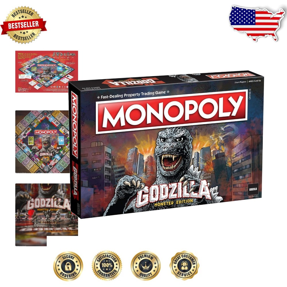 Classic Godzilla Monopoly with Custom Tokens & Iconic Locations for Fans ‹ › ‹ › ‹ › ‹ › ‹ › ‹ › ‹ › ‹ › ‹ › ‹ › ‹ › ‹ › Classic Godzilla Monopoly Terrorize and demolish your way to victory in this collectible Monopoly version featuring the legendary Godzilla and other classic kaiju monsters of the iconic movie franchise. Product Highlights: Travel around the board buying, trading, and collecting iconic kaiju monsters and locations, including: Monster Island Goro's Workshop Kitakami Lake Includes 6 custom sculpted tokens: Godzilla Mothra King Ghidorah Minilla Mechagodzilla Rodan Classic game elements reimagined: Houses renamed to FACILITIES, Hotels renamed to BASES. Community Chest Cards are now UNGCC Cards, and Chance Cards are now GODZILLA TOWER Cards. Designed for 2-6 players, ages 6 and up. Average playtime: 6+ minutes. Why Choose Classic Godzilla Monopoly? This is not just any board game; this is a monstrous showdown! Delve into a city-terrorizing twist on the beloved Monopoly game. Assemble your army of kaiju and dominate the board like the King of Monsters you are! With vivid artwork and sculpted tokens that stand out, this game promises unforgettable fun for both fans and new players alike. Gather your friends and family, and prepare for a playful yet competitive experience that spans generations, invoking the nostalgia of Godzilla's legendary legacy! Will you conquer the board, or will you be left in ruins? Don't just play Monopoly; play it with a twist of kaiju might. Order your Classic Godzilla Monopoly today and start your reign of terror! Shipping Free & Fast Shipping - We offer free shipping to most of the USA with a normal delivery time of 3-7 days. However, due to the current situation, additional delivery time (up to 3 weeks) may be required for some items. Alternative Carriers - We may use alternative carriers (e.g. USPS, FedEx, UPS, etc.) to ensure your package arrives safely and on time. Due to the use of multiple carriers, we are unable to provide a tracking number automatically. Handling Time - Orders are processed and shipped within 1-2 business days of receiving cleared payment. Shipping Restrictions - Shipping to Alaska, Hawaii, Puerto Rico, Guam, and other US territories may incur shipping charges or delivery restrictions. Please contact us before ordering, or your order can be refunded/cancelled. State Restrictions - There may be restrictions based on your state of purchase. For example, certain items may not be shipped to California due to state regulations. Contact for Tracking Updates - If you require tracking updates or have any concerns about the delivery of your order, please feel free to contact us, and we will be happy to assist you. Return 30-Day Hassle-Free Returns - We want you to be completely satisfied with your purchase. If you are not, you can return the item within 30 days of receiving it for a full refund or exchange. Easy Return Process - To start a return, simply contact us and we will provide you with a prepaid return shipping label and detailed instructions. Restocking Fee - There are no restocking fees for returns. However, the buyer is responsible for return shipping costs if the return is not due to a seller's error. Refund Processing Time - Refunds will be processed within 5 business days of receiving the returned item in its original condition. Payment We accept all major credit cards, PayPal, and Apple Pay for your convenience. Your payment information is secure and encrypted to ensure a safe and seamless transaction. Please complete your payment within 3 days of purchase to avoid any delays in shipping. Feedback Your feedback is extremely important to us. We strive to provide the best products and customer service possible. If you are satisfied with your purchase, please take a moment to leave us a positive review. If you have any concerns or issues with your order, please contact us before leaving negative feedback. We are committed to resolving any problems and ensuring your satisfaction. Contact Us If you have any questions or concerns, please feel free to reach out to our customer support team. You can contact us through the eBay messaging system. We are available Monday to Friday, 9:00 am to 5:00 pm EST, and we will do our best to respond to your inquiry within 24 hours. Buy it now and enjoy a pleasant shopping experience! UPC: Not Set Recommended Age Range: 6+ MPN: Not Set Age Level: 12 Months & Under,1-2 Years,3-4 Years,4-7,8-11 Years,12-16 Years,17 Years & Up,6+ Features: Collectible Edition,Custom Sculpted Tokens,City-Terrorizing Twist,Renamed Cards and Properties,Classic Monster Movie Theme,Iconic Kaiju Monsters,Familiar Locations Brand: Unbranded Game Title: Monopoly Game Type: Board Game Year: Not Set Type: Complete Game Theme: Not Set Min. Number of Players: 2-6 Players Award: Not Set Gender: Boys & Girls Country/Region of Manufacture: Not Set