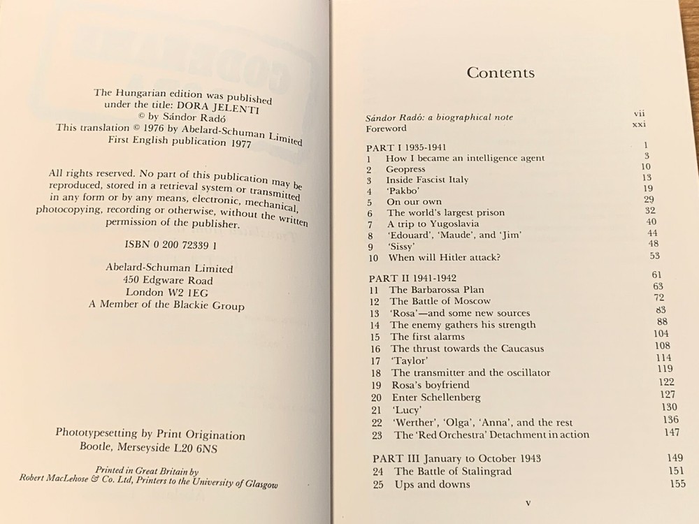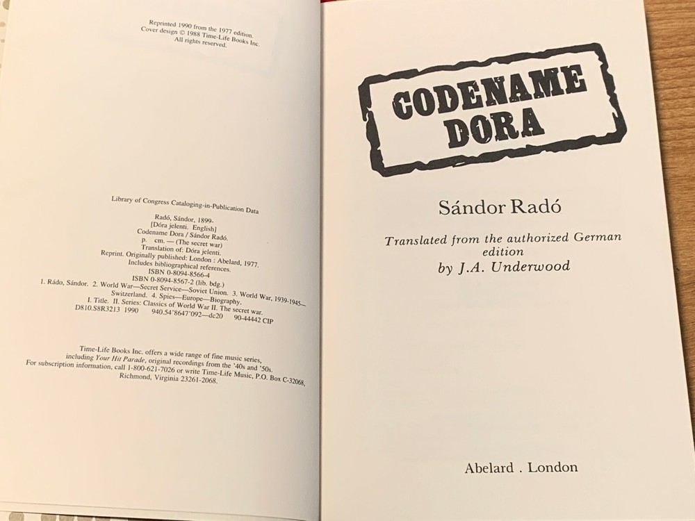 Codename Dora by Sâandor Radâo, Translated from Authorized German Edition by J. A. Underwood (1st English Edition 1977, Hardcover, Published by Abelard London)