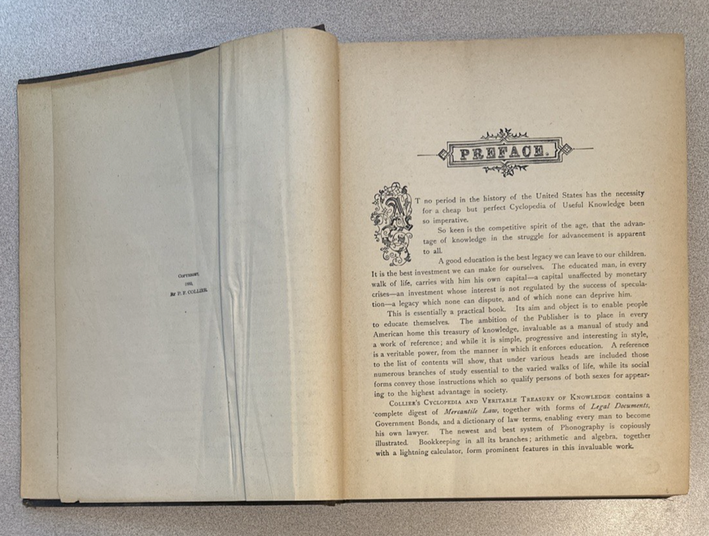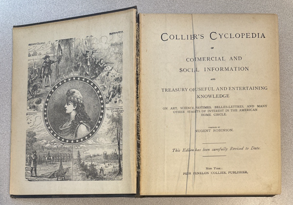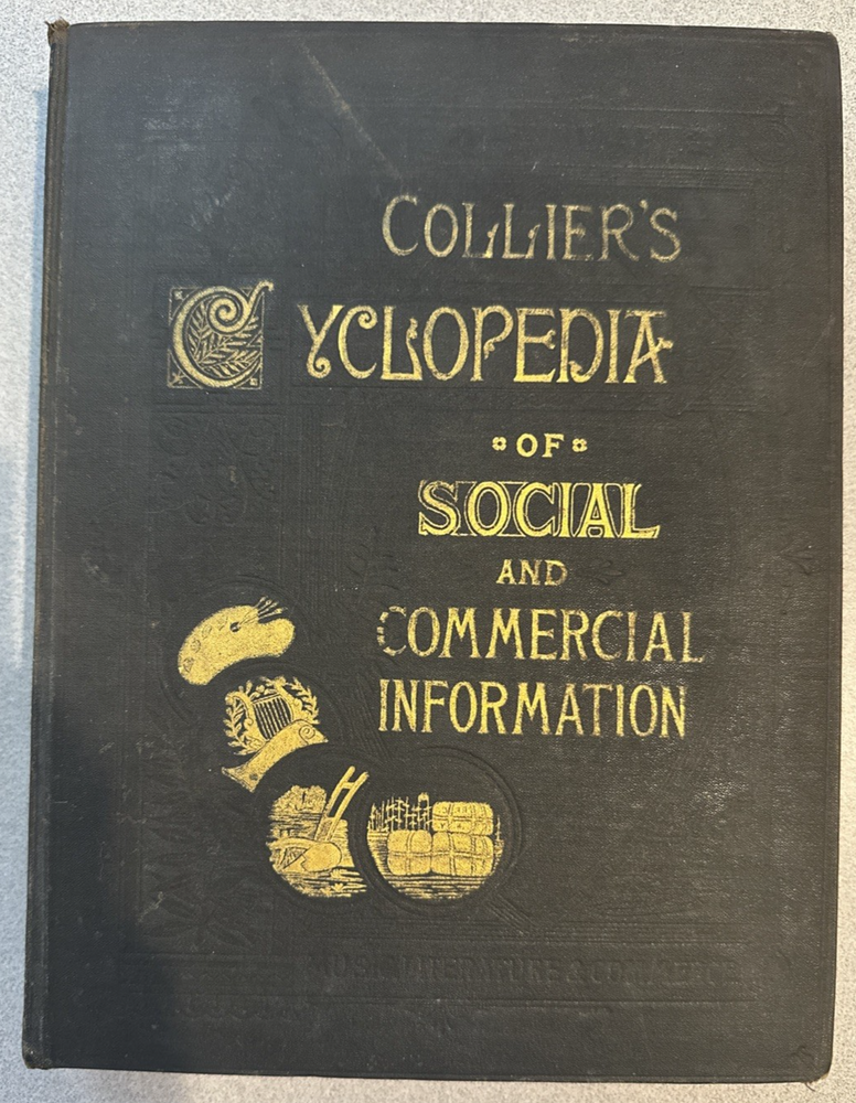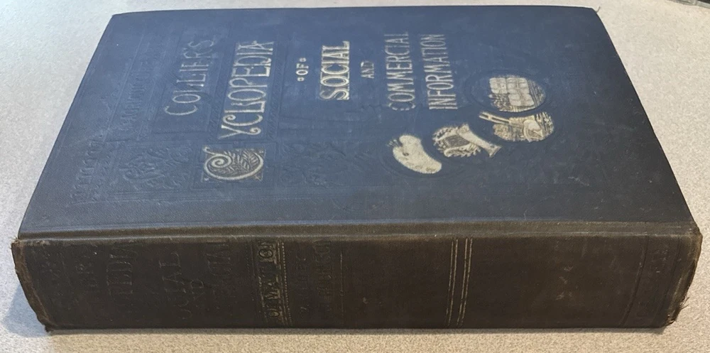 Collier's Cyclopedia of Social and Commercial Information 1882 Nugent Robinson. There is slight wear on the spine, corners and edges. The pages have yellowed and there is foxing. Some pages have creases or folds. The binding is loose near the cover. Please see photos, as they are part of the description and provide important details. Feel free to message me with any questions. Thank you!