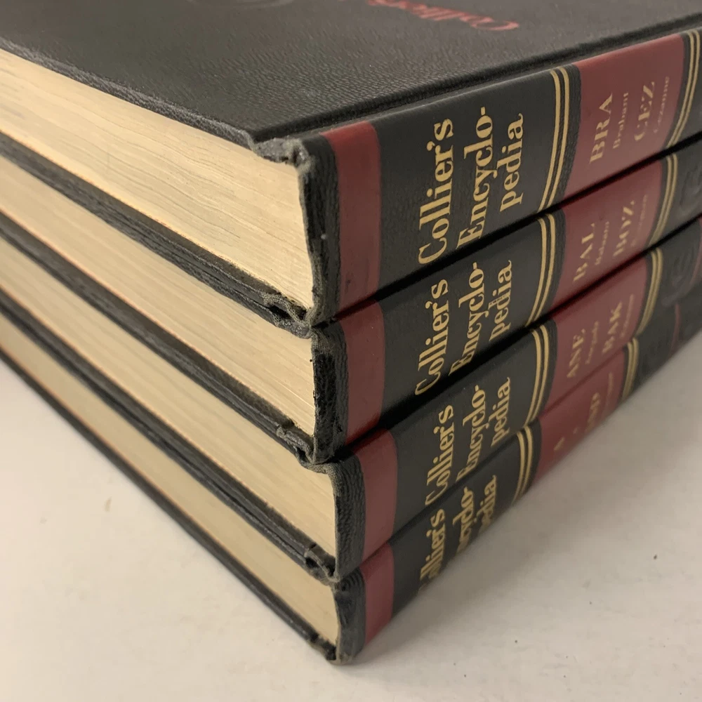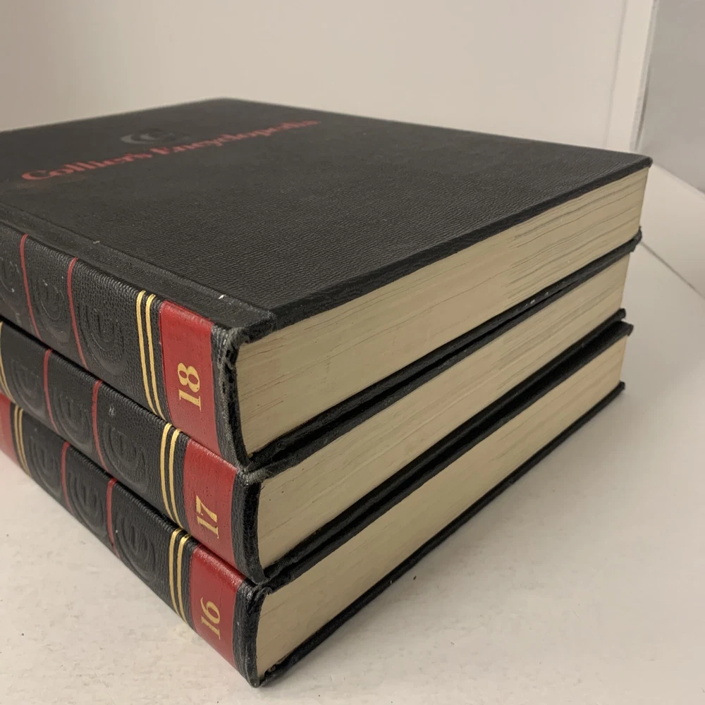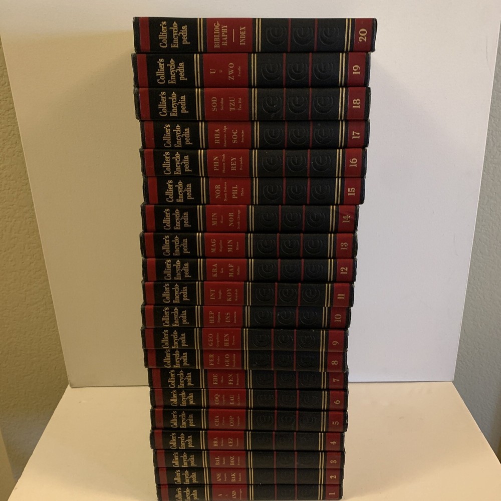 The 1956 Collier's Encyclopedia Set is a complete collection of twenty volumes in faux leather bound hardcover format. The encyclopedia, part of the Collier's series, covers a wide range of subjects in world history and general knowledge. Written by various authors and published by P. F. Collier & Son Corp., the set is a valuable resource in English language for anyone seeking comprehensive information on diverse topics.