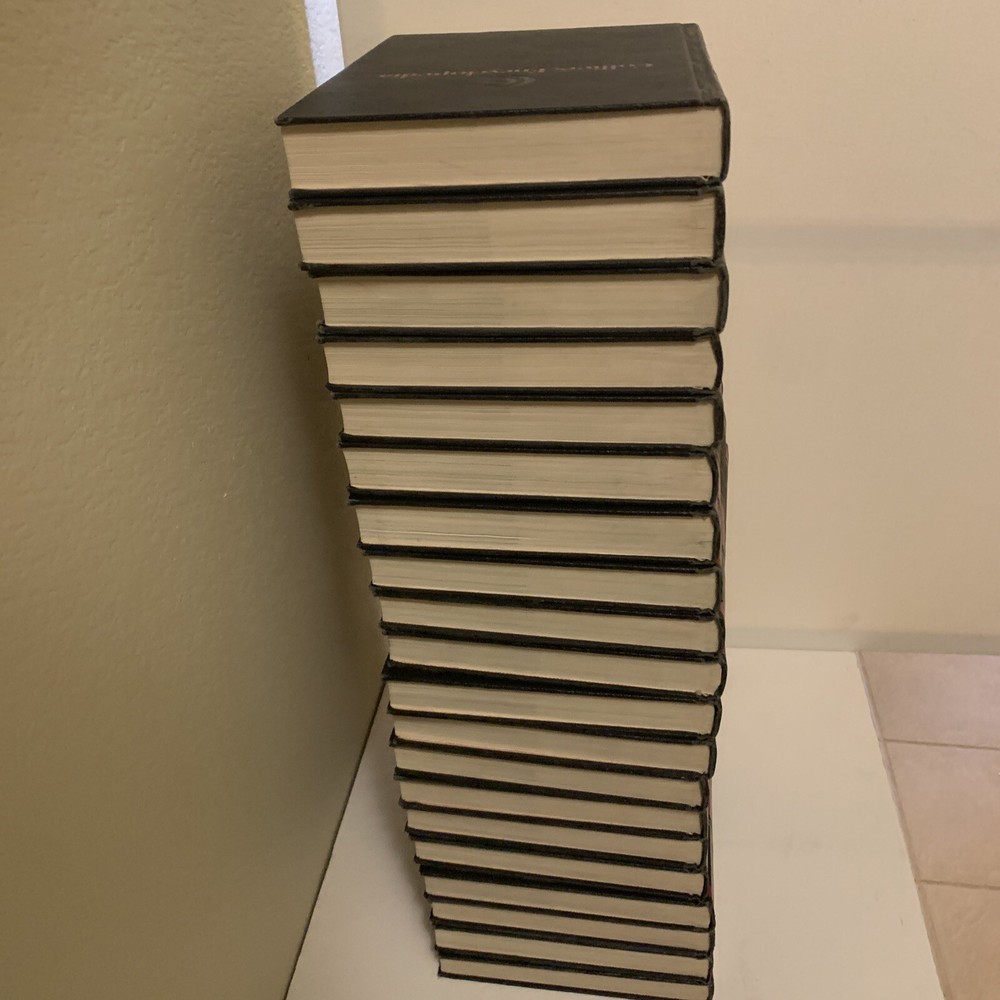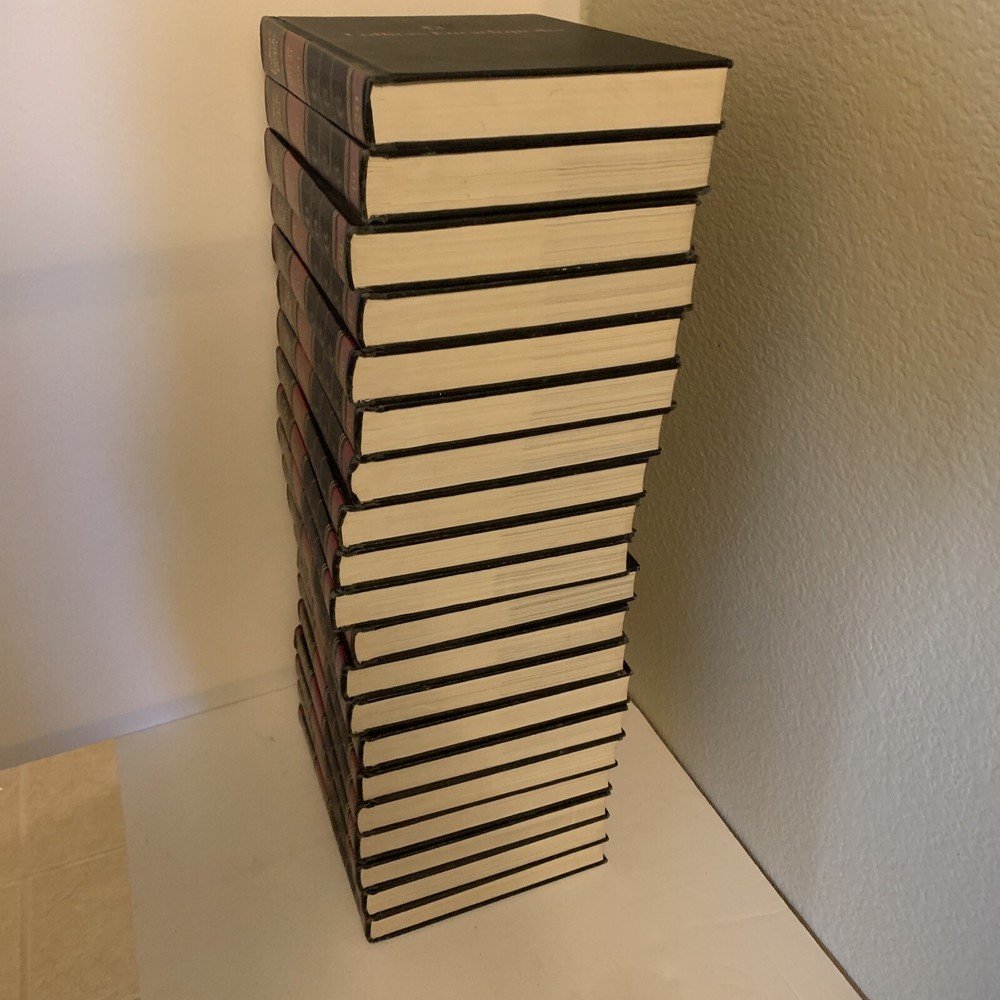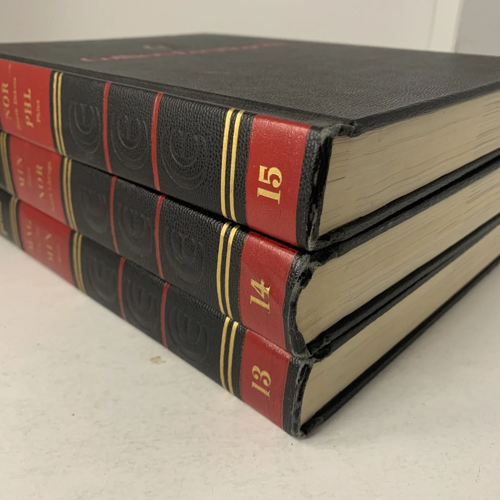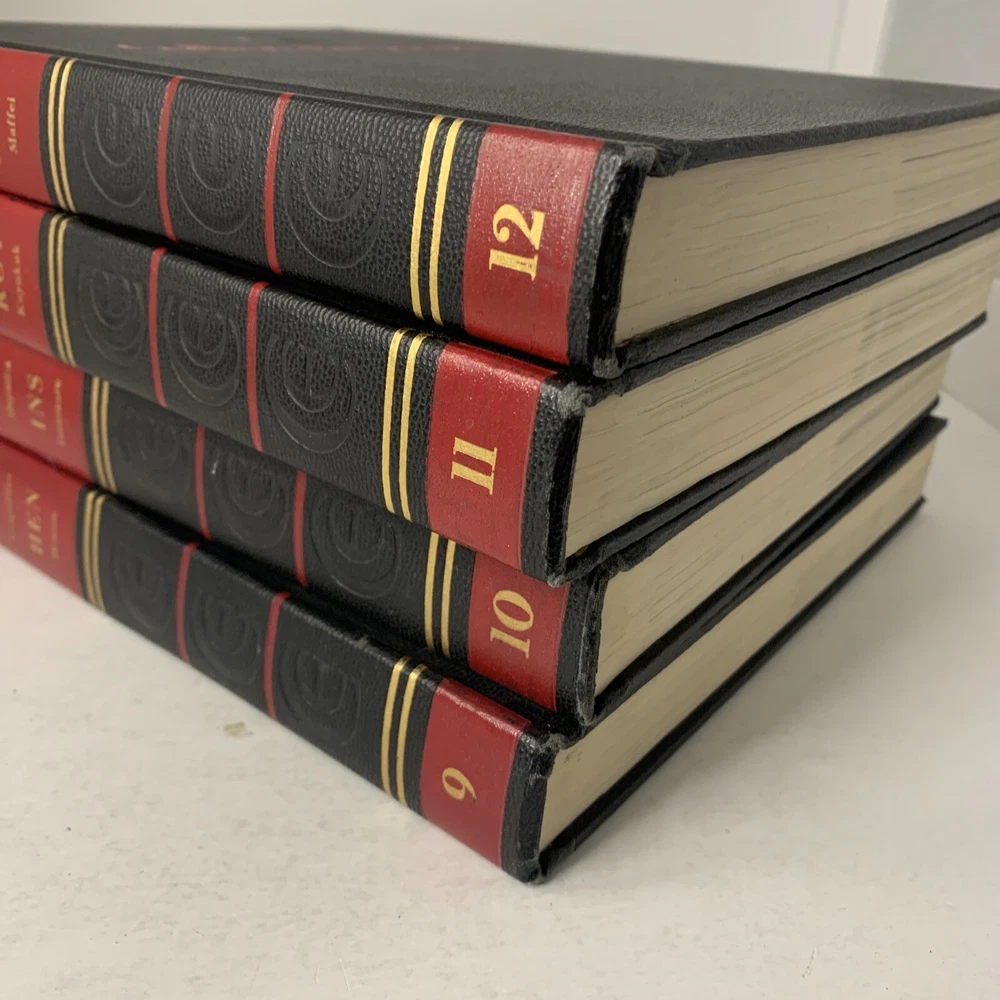 The 1956 Collier's Encyclopedia Set is a complete collection of twenty volumes in faux leather bound hardcover format. The encyclopedia, part of the Collier's series, covers a wide range of subjects in world history and general knowledge. Written by various authors and published by P. F. Collier & Son Corp., the set is a valuable resource in English language for anyone seeking comprehensive information on diverse topics.