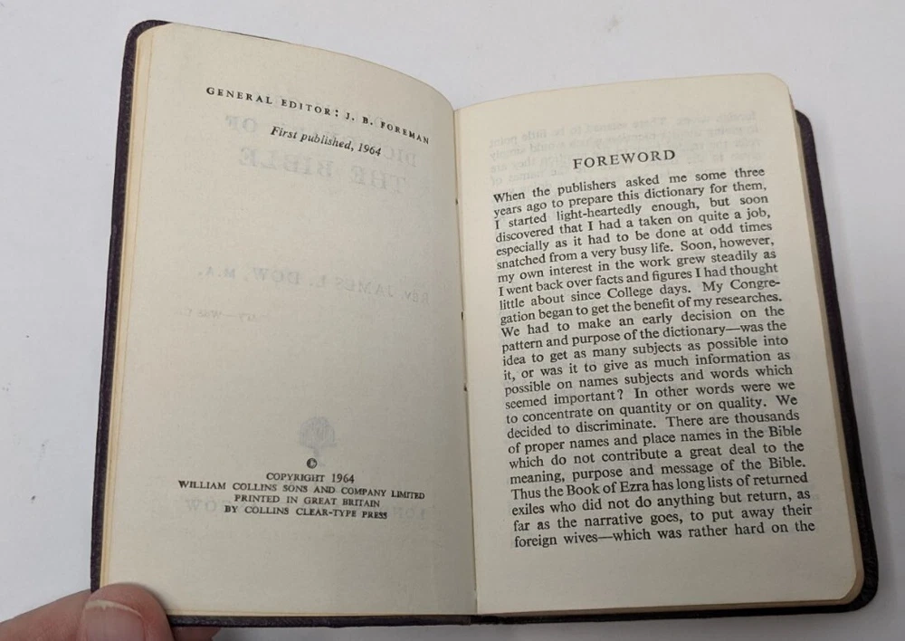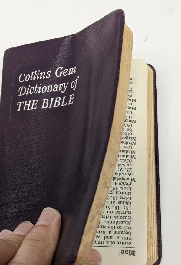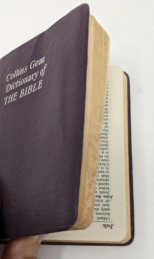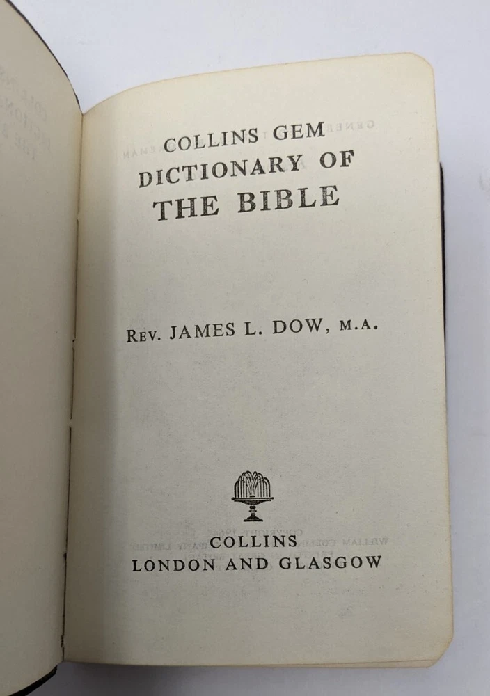 Collins Gem Dictionary Of The Bible by Rev. James L. Dow, M.A. Collins London and Glasgow Copyright 1964 Pocket Sized Mini Paperback Printed in Great Britain The body of the book was inserted upside down in the cover. The foredges of the book are yellowed Please see pictures as they are part of the description. JJ
