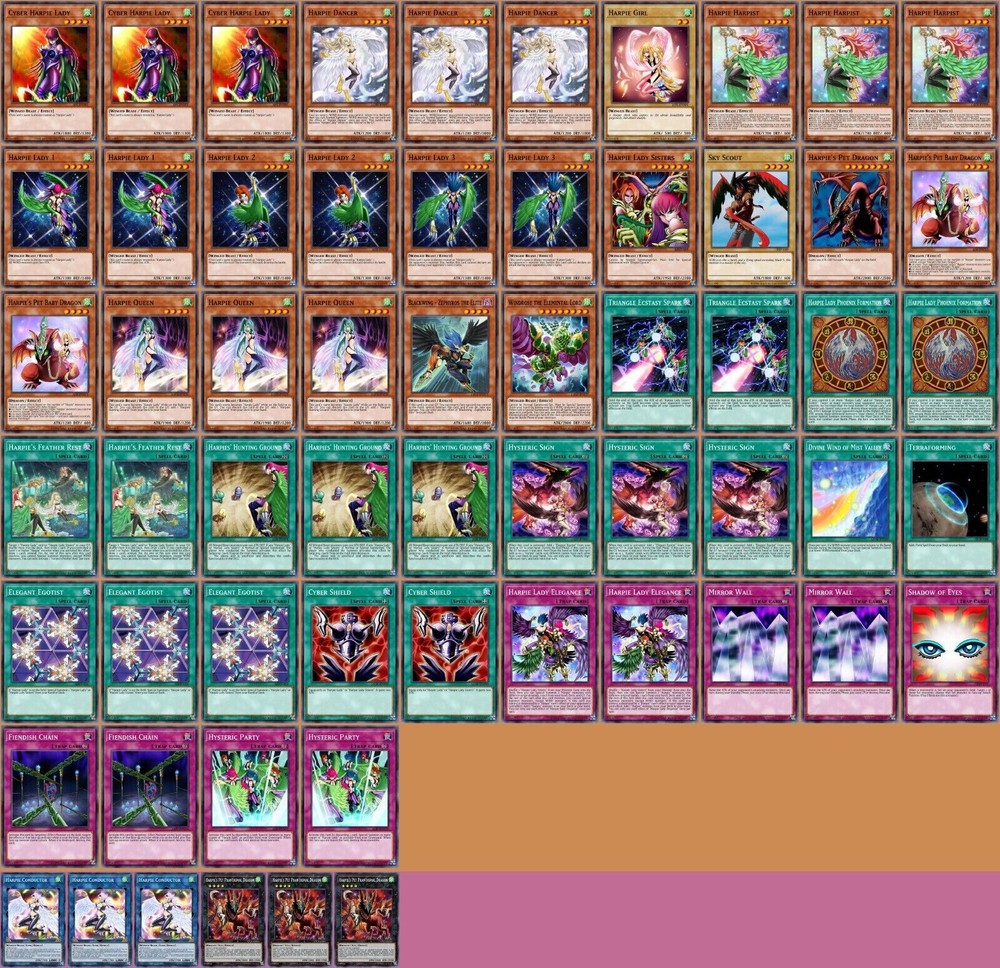 Hello all I am a New Ebay Seller!!! I am a Female Yugioh & Magic Collector!!! Happy Bidding!!! A bonus for ordering you will also Get a Free Holo Card from my collection. It maybe Super Rare, Ultra Rare, or SECRET Rare!!! Picture may have been edited due to Inventory Changes Please read description Below Item for sale is: Main Deck (54) 3 - Cyber Harpie Lady 3 - Harpie Dancer 1 - Harpie Girl 3 - Harpie Harpist 2 - Harpie Lady 1 2 - Harpie Lady 2 2 - Harpie Lady 3 1 - Harpie Lady Sisters 1 - Sky Scout 1 - Harpie's Pet Dragon 2 - Harpie's Pet Baby Dragon 3 - Harpie Queen 1 - Blackwing - Zephyros the Elite 1 - Windrose the Elemental Lord 2 - Triangle Ecstasy Spark 2 - Harpie Lady Phoenix Formation 2 - Harpie's Feather Rest 3 - Harpies' Hunting Ground 3 - Hysteric Sign 1 - Divine Wind of Mist Valley 1 - Terraforming 3 - Elegant Egotist 2 - Cyber Shield 2 - Harpie Lady Elegance 2 - Mirror Wall 1 - Shadow of Eyes 2 - Fiendish Chain 2 - Hysteric Party Extra Deck (6) 3 - Harpie Conductor 3 - Harpie's Pet Phantasmal Dragon