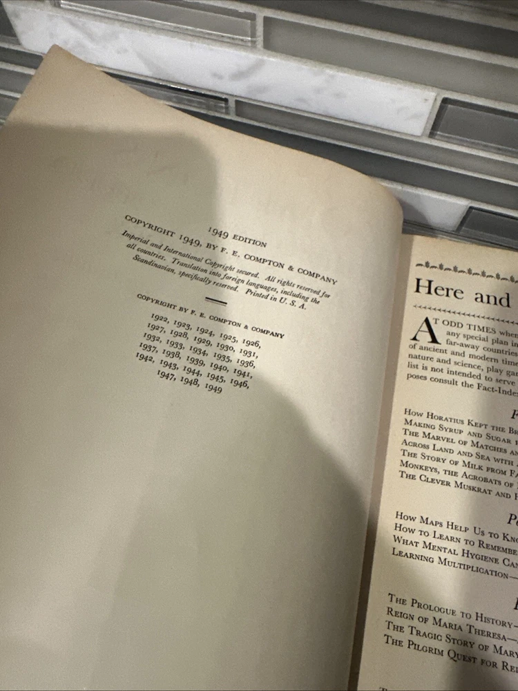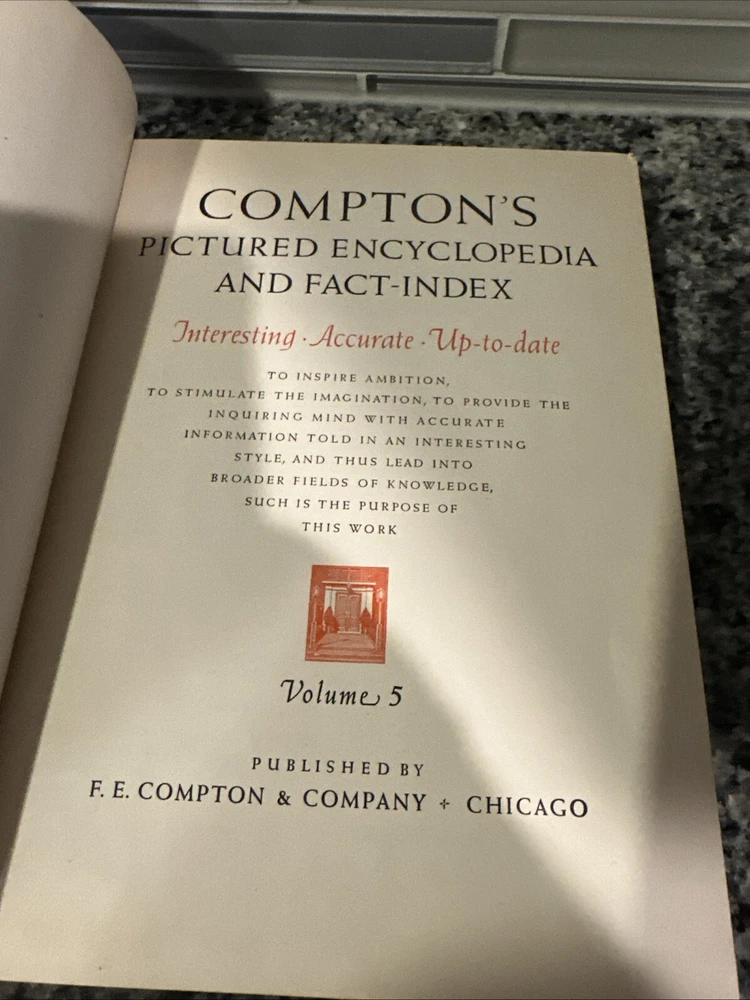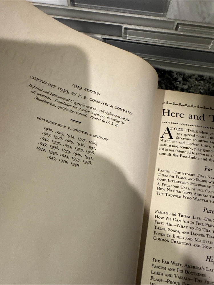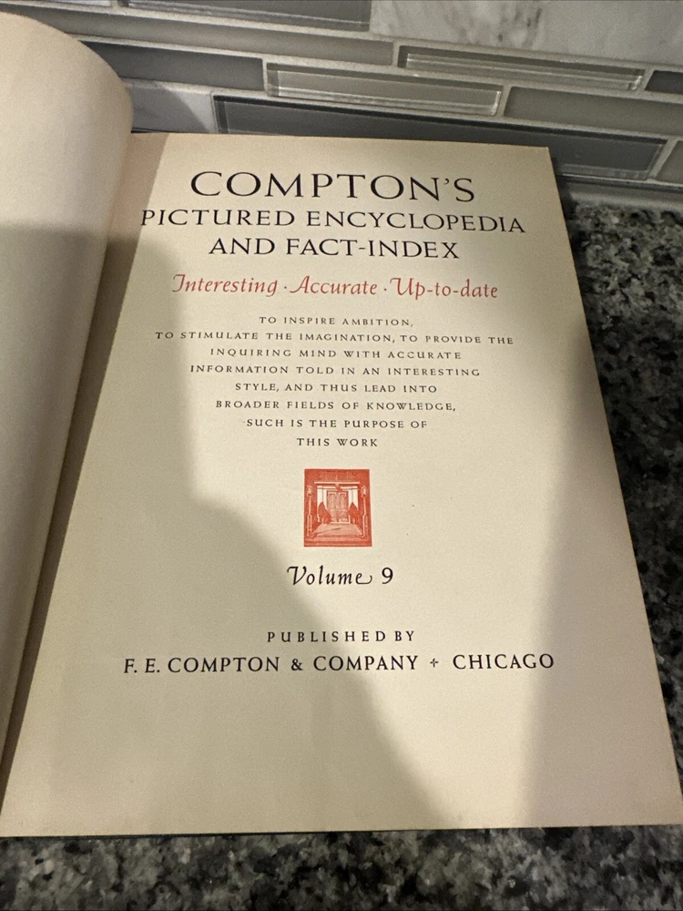 Nice lot of 3 books - in great condition - The hardcover shows typical wear due to age, with a spine in very good condition and pages in mint condition. The exterior cover exhibits minor wear, adding to its vintage charm. See Pictures for details ….exactly what you will receive! Please check out my other listings within the same volume series and additional offerings. Save on combined shipping and enjoy discounts for repeated purchases or buying multiple sets. 📚 Compton's Pictured Encyclopedia Fact Index 1949 - Volumes #5 & #9 📚 Subject and Genre : Immerse yourself in the world of knowledge with the 1949 Compton's Pictured Encyclopedia Fact Index , specifically Volumes #5 and #9 . This vintage set is a goldmine of information, meticulously detailing a wide range of subjects across multiple disciplines. Renowned for its illustrated content, this encyclopedia serves not only as an educational resource but also as a visual delight, making it a treasured asset for both historians and collectors. Detailed Overview : Volume #5 (F) : This volume covers topics beginning with the letter "F" , providing in-depth articles on subjects such as Finance, Flora, Fauna, and Folklore . The detailed illustrations enhance the educational experience, making complex concepts more accessible. Volume #9 (M) : Encompassing topics that start with the letter "M" , this volume delves into areas like Medicine, Mathematics, Music, and Mythology . Richly illustrated, it offers visual guides and explanations that bring the content to life. Why These Volumes Are Unique : Comprehensive Content : Authored by scholars and experts, the content is celebrated for its accuracy and educational merit, making it a reliable reference tool. Visual Appeal : The black embossed hardcover adds an element of elegance, while the detailed illustrations enrich the reading experience, making learning both engaging and visually stimulating. Historical Snapshot : Published in 1949, these volumes offer a fascinating glimpse into post-war knowledge and perspectives, encapsulating the academic standards and educational values of the time. Collector's Item : The classic leather binding and elegant design make these volumes prized possessions for collectors and enthusiasts. Age and Value : These volumes, being over 70 years old , hold significant historical value. Their age adds to their charm, making them a valuable addition to any vintage book collection. Collectors and enthusiasts will appreciate the depth of knowledge and the craftsmanship involved in their creation. Condition : Good Condition : The hardcover shows minor wear, typical of vintage books, adding to its historical authenticity. Mint Pages : Inside, the pages are in mint condition, preserving the integrity and readability of the content. Own a piece of intellectual history with these beautifully crafted volumes of the Compton's Pictured Encyclopedia Fact Index . Perfect for collectors, educators, and anyone with a passion for vintage literature.