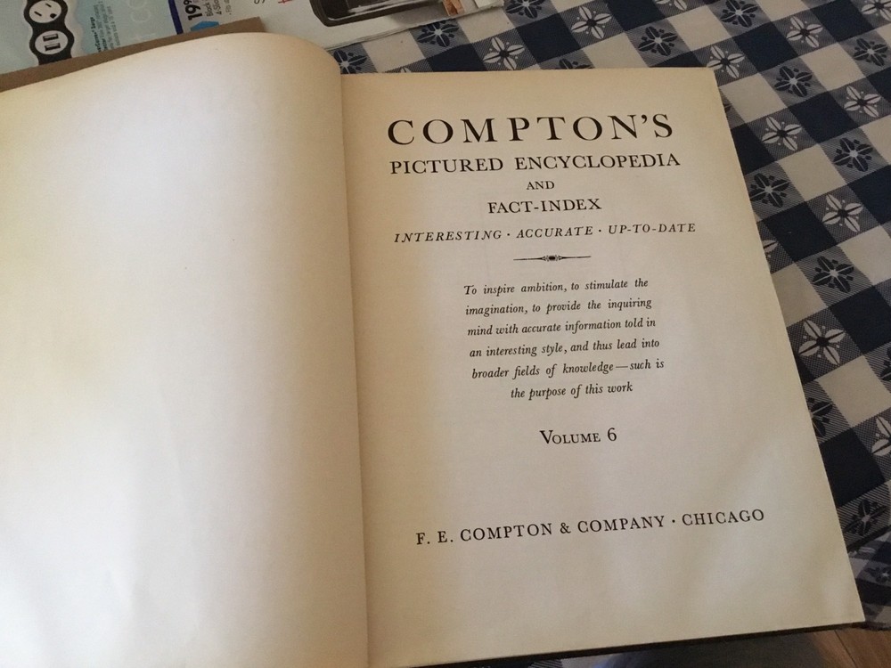 Vintage 1942 Compton's Pictured Encyclopedia, Volume 6, G & H. Very good condition, binding tight, no tears or missing pages. Hardcover , also in good shape. Entirely readable and usable! Please see images to judge overall condition yourself. This book is back when encyclopedia were real books! This is priced to sell now, I am liquidating my entire personal collection. Or make me a reasonable offer. Thanks!