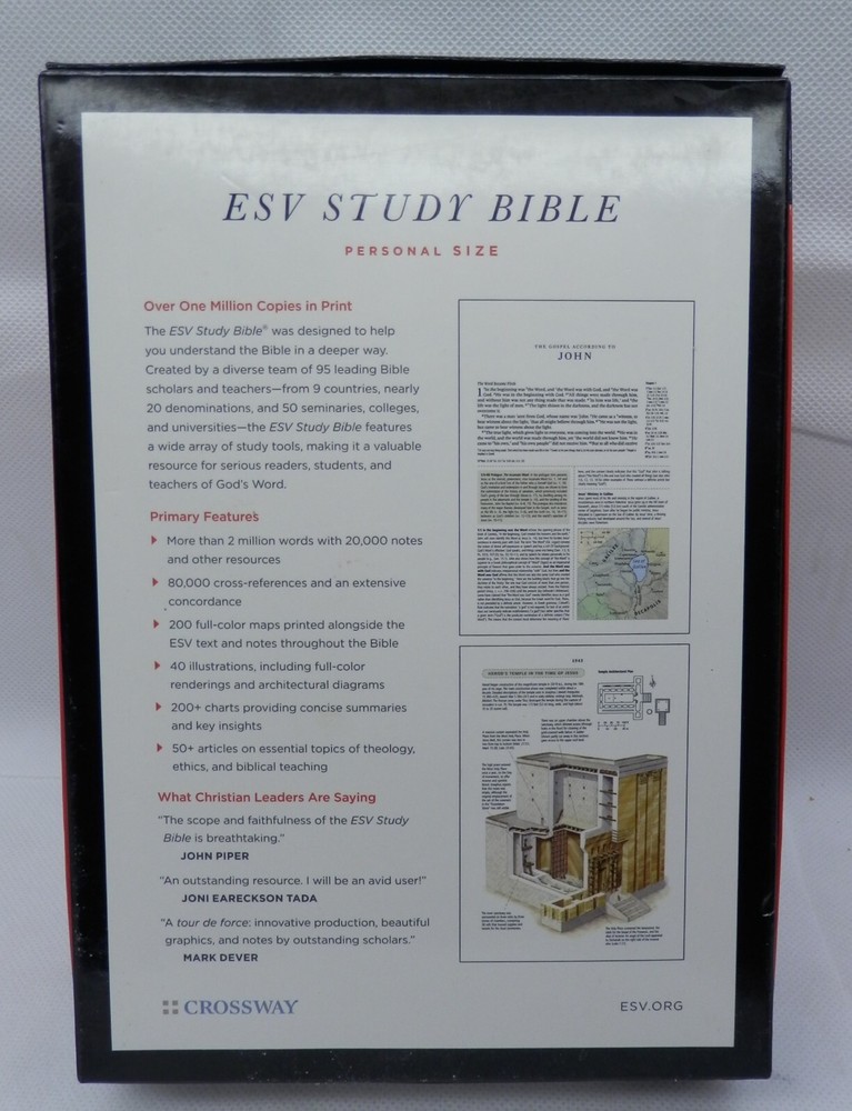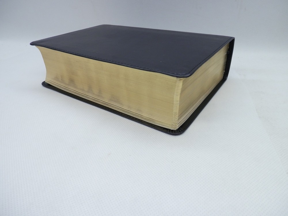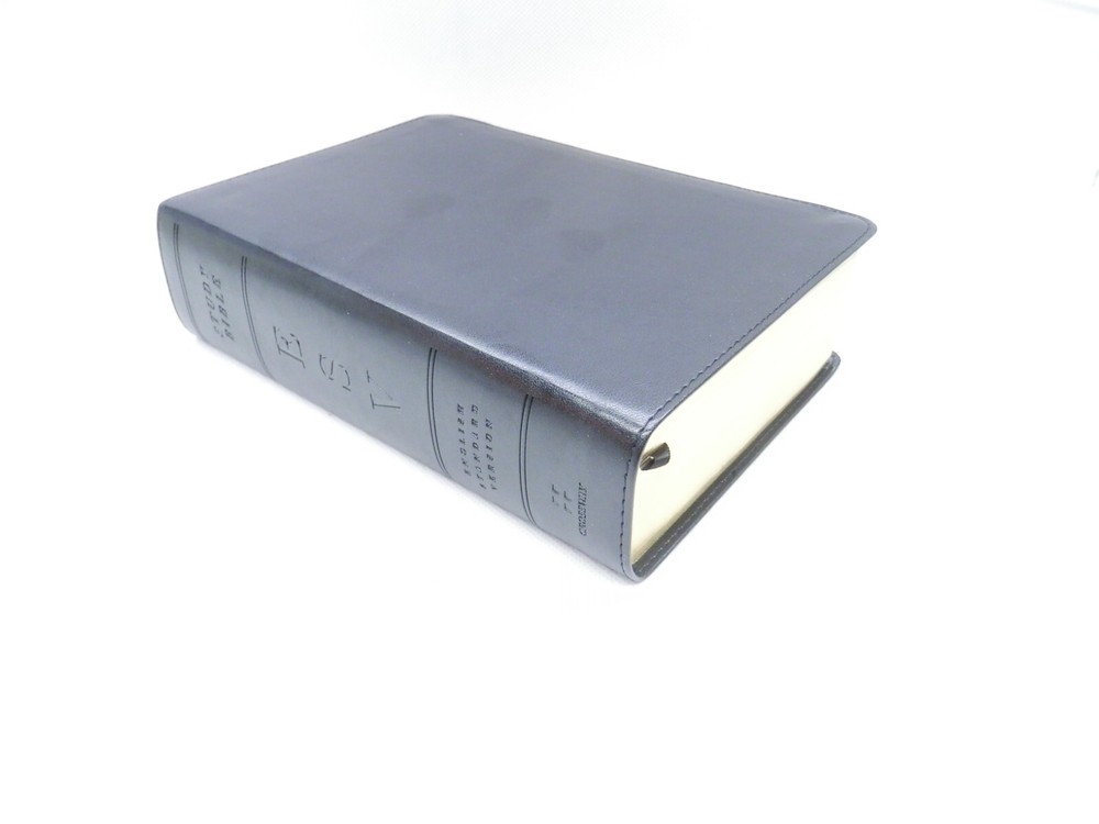 Very nice looking Bible! Has some fingerprints on the cover. Nothing written on the inside cover. The bookmark has been pulled out of the original location. TruTone leatherlike cover in Black. Nice color additions throughout. About 8 1/4" x 5.75" x 2" thick Will be shipped in a sturdy box.