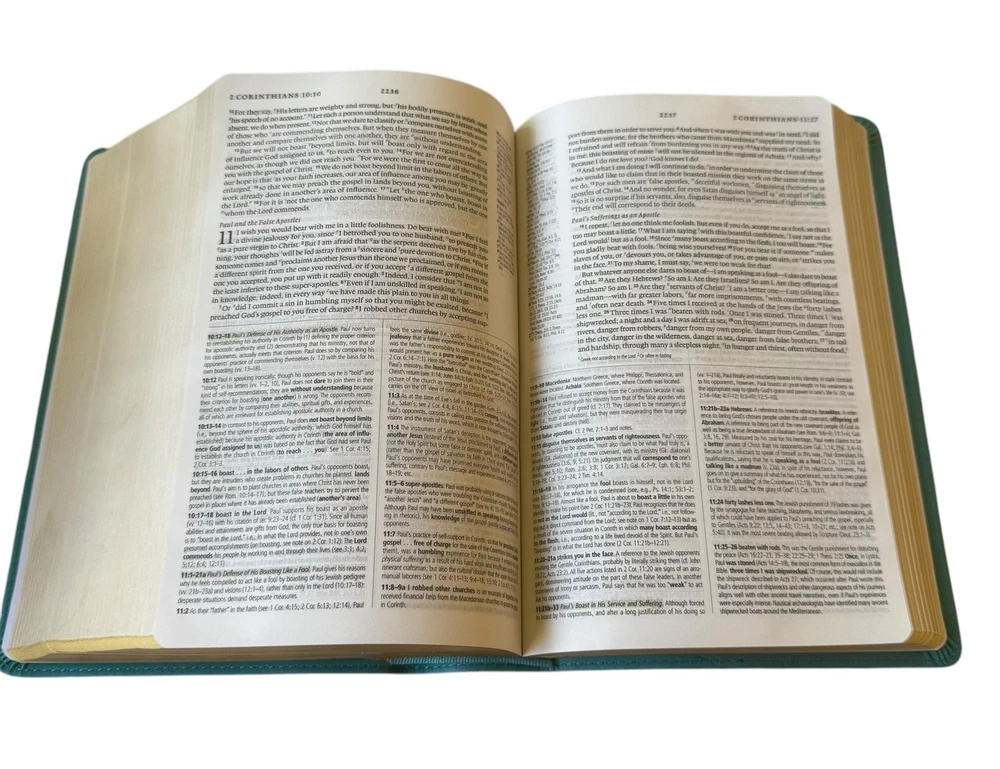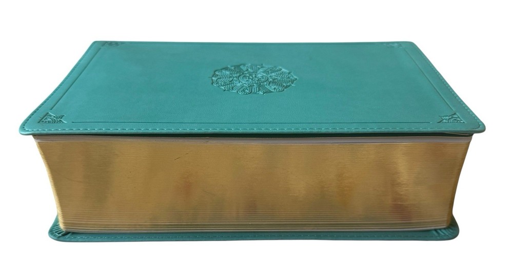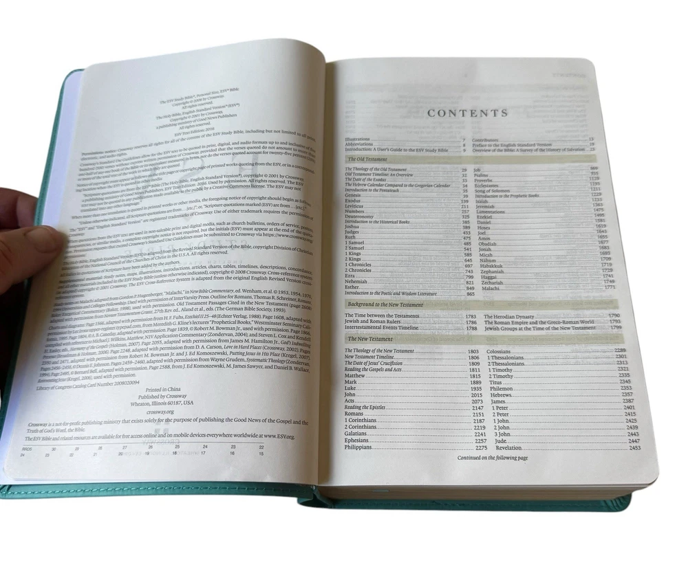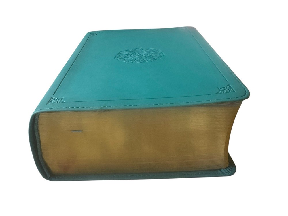 Explore the depths of scripture with the Crossway Like new. This English Standard Version (ESV) Study Bible was published in 2016, offers a comprehensive look into the Bible with translations from Hebrew, Aramaic, and Greek. Perfect for both young adults and adults, this study bible has a faux leather bound cover in a beautiful turquoise color, with dimensions of 8.4”x2.4”x5.75” and a weight of 2 lb 12 oz, making it both durable and portable. With over 2702 pages, this beautiful Bible includes a variety of features such as a topical index, concordance, and maps, making it an invaluable resource for any Bible study. The literary movement of the Bible is Enlightenment, and it is intended for those interested in religious and spiritual genres. This Bible is a great addition to any collection, and its features provide a comprehensive look into the Bible, making it an ideal choice for any seeker of truth.