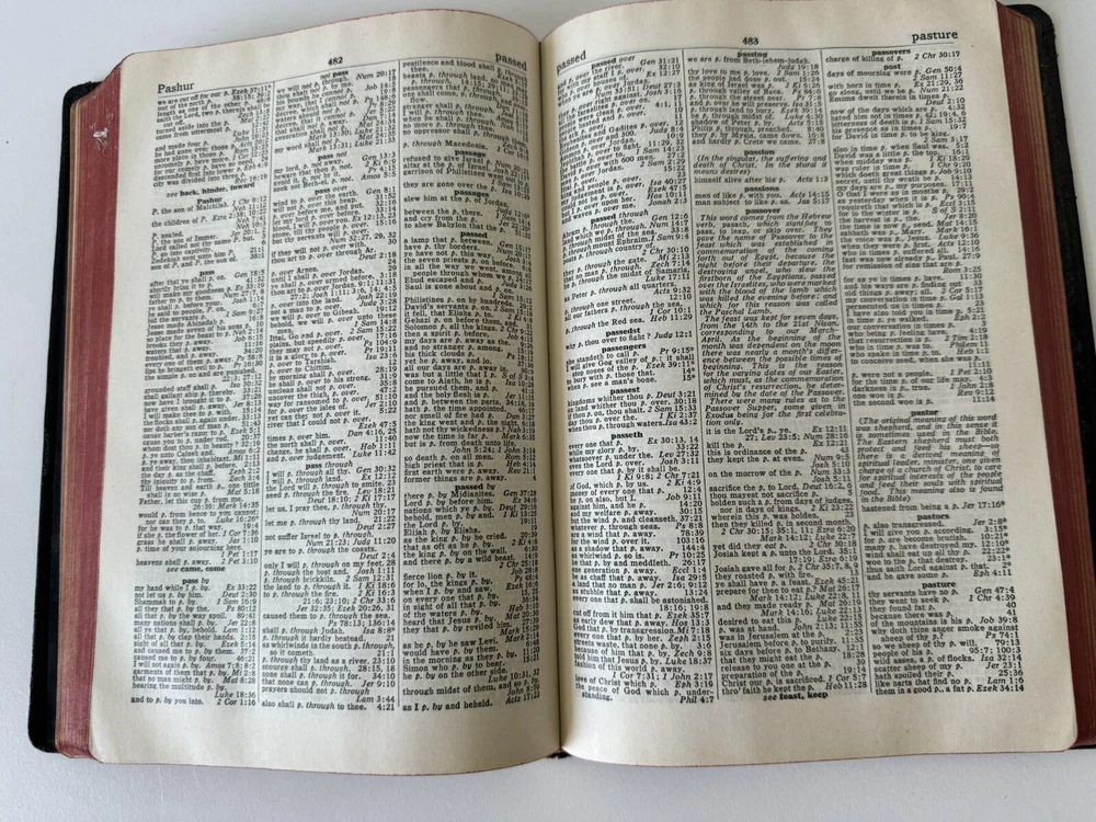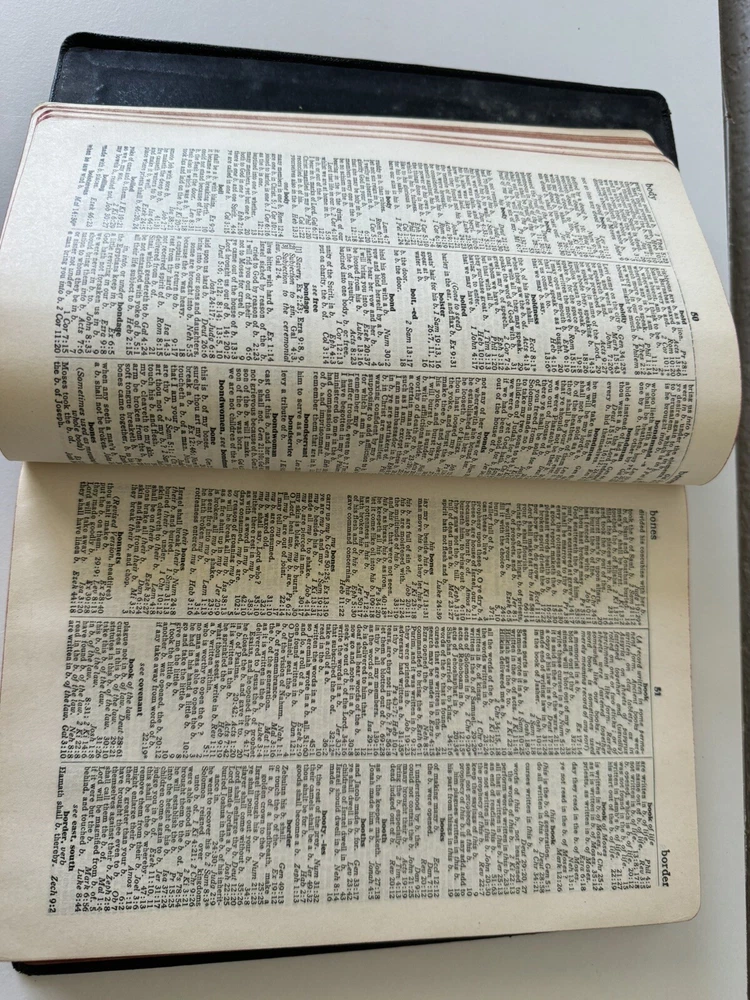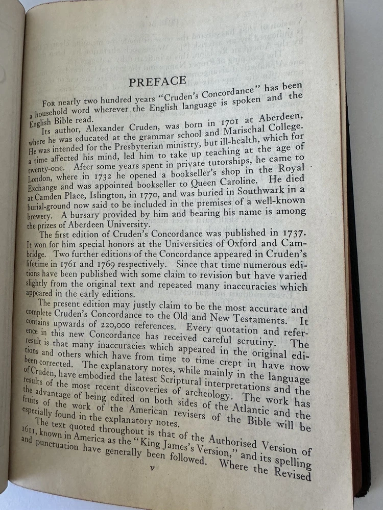 This vintage Cruden's Concordance is a true treasure! Despite some expected wear and age spots, it's completely odor-free with intact pages. The bonded leather cover shows character while remaining sturdy. Arrived beautifully packaged - absolutely thrilled with this classic find that's still perfectly usable!