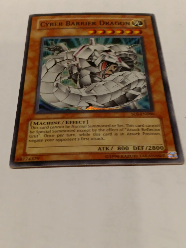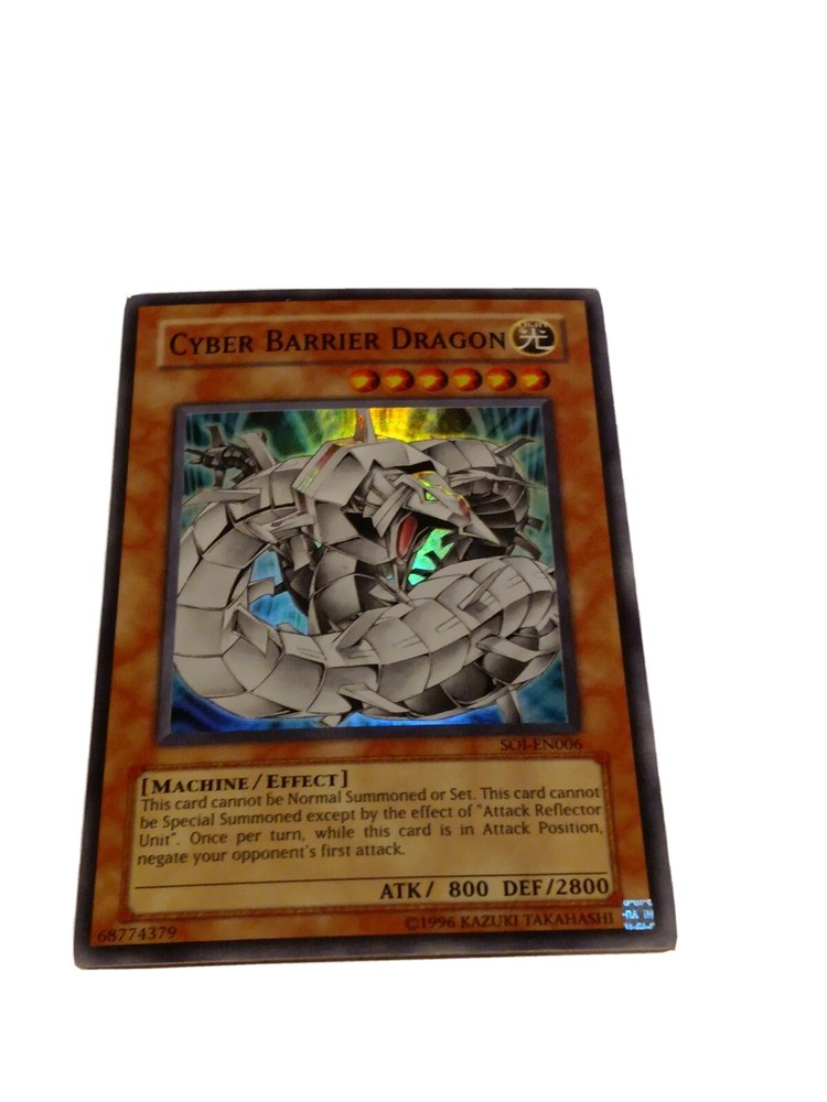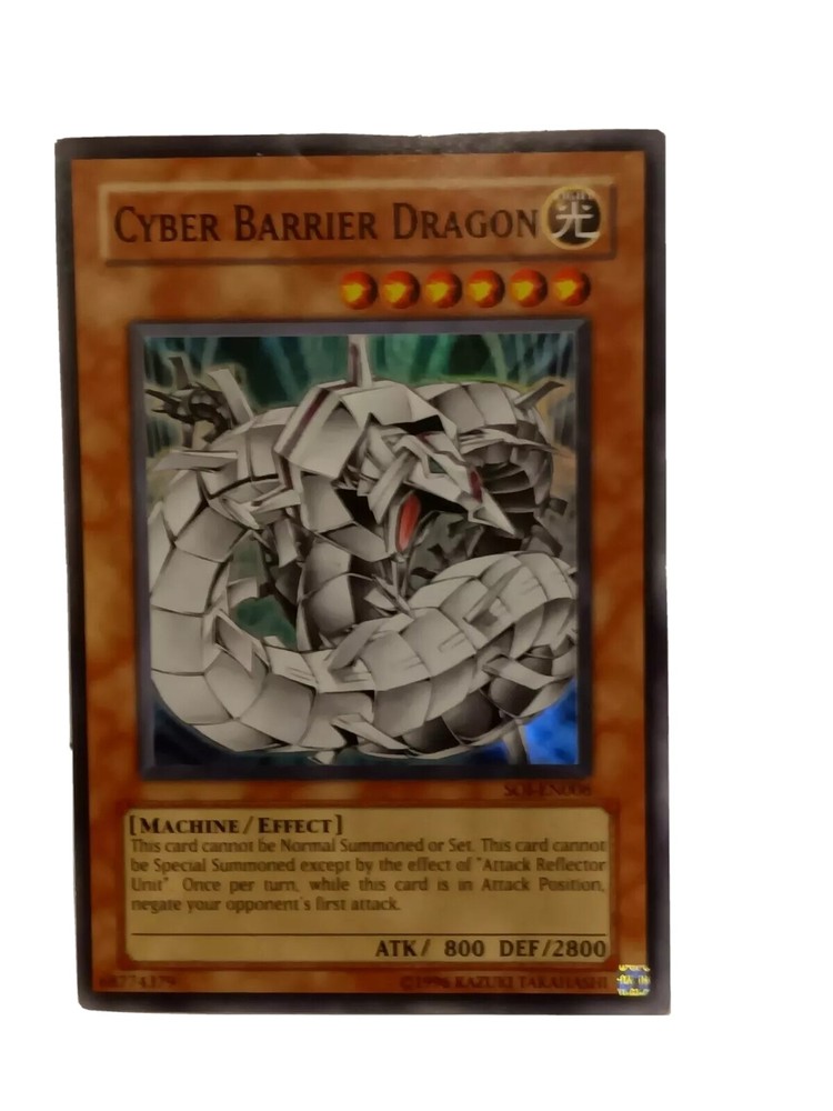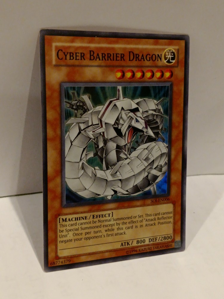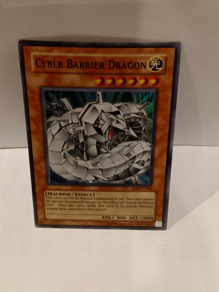 Cyber Barrier Dragon - SOI-EN006 - Super Rare Unlimited Shadow of Infinity. Shadow of Infinity was the 18th expansion of the Yugioh TCG. It was released in February of 2006 and consisted of 85 cards total. Noteworthy cards from Shadow of Infinity include Cyber Laser Dragon , Demise, King of Armageddon & Treeborn Frog . The 3 “Sacred Beasts” from the Yu-Gi-Oh GX anime were released in this set. Also included are: many Insect-Type monsters, new Ritual Monsters, and support for “Cyber Dragon” and “Ancient Gear” archetypes. Released along with this set was the Shadow of Infinity: Special Edition set. Shadow of Infinity consists of the following rarity breakdown: 35 Commons 14 Rares 7 Super Rares 4 Ultra Rares 25 Ultimate Rares