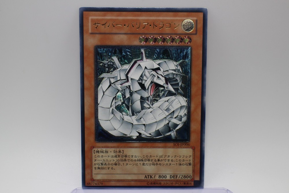 Level up your Yu-Gi-Oh! TCG collection with the Cyber Barrier Dragon SOI-JP006, a must-have for any duelist seeking strategic advantage. This card, marked as Ultimate Rare, offers not just a powerful addition to your gameplay but also a collectible gem for enthusiasts.Shipped from the USA with fast shipping options, ensure that your Cyber Barrier Dragon arrives ready for your next battle. With its unique abilities and imposing presence, it's a card that stands out in the arena and adds depth to your deck.