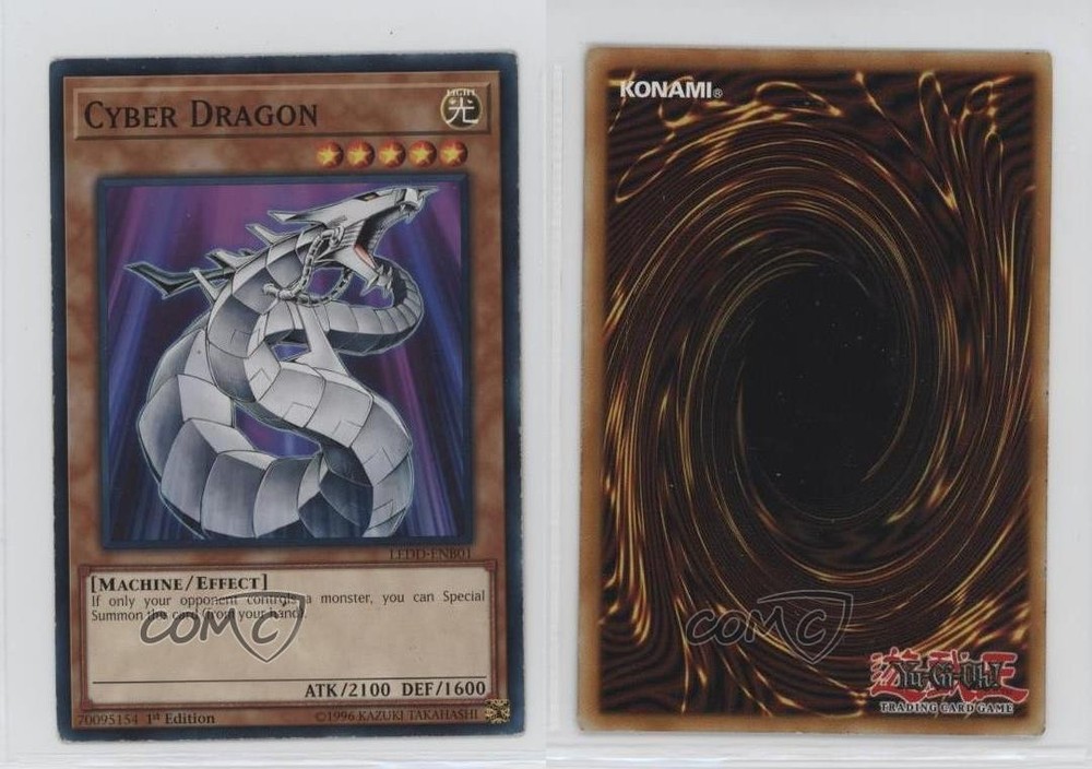 2017 Yu-Gi-Oh! Legendary Dragon Decks - [Base] - 1st Edition #LEDD-ENB01 Cyber Dragon COMC Item: 229616713 - YuGiOh Card - Featuring Cyber Dragon Search for more: 2017 Yu-Gi-Oh! Legendary Dragon Decks Search for more: 2017 Yu-Gi-Oh! Legendary Dragon Decks - [Base] - 1st Edition View all of our Listings Auctions Buy It Now About Us Located in the beautiful Pacific Northwest, COMC (Check Out My Cards) is the world's largest consignment service for trading card singles. More than 10,000 people have used our consignment service to list over 50 million trading cards. Find out how we can help you consign your items on eBay by contacting us through eBay messaging. COMC -- "The Safe & Easy Way to Buy & Sell" Raw Condition for Modern Cards Unless otherwise noted, raw modern cards are listed in Near Mint-Mint condition or better. A NM-MT card appears to be Mint at first glance, but upon closer inspection, may exhibit some of the following: minor print defects (e.g. roller marks, print line, dimple), minor scratches, slight edge wear, and slight corner wear. Centering is clearly visible in the images provided and does not factor into our condition assessment. Raw Condition for Vintage Cards Unless otherwise noted, raw vintage cards are listed in Excellent condition or better. An EX card may exhibit some of the following: minor rounding of corners, surface wear, print defects, light scratches, and slight edge wear/chipping. Centering is clearly visible in the images provided and does not factor into our condition assessment. Domestic Shipping Combined shipping for multiple items is available. To receive combined shipping, please ensure all desired items are in your eBay shopping cart before proceeding to checkout. eBay limits orders to 40 items per order. We automatically combine multiple orders placed on the same day. If you place multiple orders on the same day, please contact us to request a refund of applicable shipping costs. Signature confirmation may be required on invoices over $400. All cards are protected and shipped securely. International Shipping COMC offers eBay's International Shipping (EIS) for international orders under $2,500* (see country exceptions below). All duties and import fees are paid at checkout; in the rare event that there are additional import fees upon delivery, these are borne by the buyer. EIS packages route through a shipping hub in Erlanger, KY before shipping to their final destination. Please note that EIS does not allow for combined shipments. The shipping rates are determined by eBay and cannot be adjusted. *Maximum sale price exceptions: Colombia, Kuwait ($2,000); Taiwan ($1,539); Chile, Costa Rica, Guatemala, Honduras, Trinidad and Tobago ($1,000); Antigua and Barbuda, Aruba, Belize, Dominica, Grenada, Philippines, Saint Kitts and Nevis, Saint Lucia, Montserrat, Turks and Caicos Islands ($500); Dominican Republic, El Salvador ($200). Please request a shipping quote through eBay messaging for orders that exceed the maximum sale price supported by eBay's International Shipping. You will be responsible for all duties and import fees for international orders shipped outside the EIS. All cards are protected and shipped securely. Payment COMC does not accept offers on our cards through our eBay storefront. COMC utilizes eBay’s managed payments system. If you are experiencing difficulties making a payment, please contact eBay for assistance. Return Policy Returns are only accepted on the rare occasion the item is not as described. If you are making a return, please initiate the return process through eBay so a mailing label can be provided for you. Prior to listing, our expert team carefully assessed this item to represent it accurately. Please review the description and high-definition images prior to purchasing to ensure this item meets your satisfaction. We welcome you to contact us if you have further questions about this item. Trust and Integrity COMC carefully assesses each item consigned to us to prevent fraudulent items from entering the marketplace. If you believe an item offered on COMC may be fraudulent, please contact us with details so we can investigate the issue. Items we determine are outside our supported items policy may be removed. Last Modified: 7/15/2025 8:54:46 PM PDT