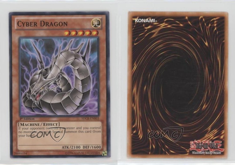 2014 Yu-Gi-Oh! Cyber Dragon Revolution - Structure Deck [Base] - 1st Edition #SDCR-EN003.2 Cyber Dragon (Alternate Art) COMC Item: 108309343 - YuGiOh Card - Featuring Cyber Dragon Search for more: 2014 Yu-Gi-Oh! Cyber Dragon Revolution Search for more: 2014 Yu-Gi-Oh! Cyber Dragon Revolution - Structure Deck [Base] - 1st Edition View all of our Listings Auctions Buy It Now About Us Located in the beautiful Pacific Northwest, COMC (Check Out My Cards) is the world's largest consignment service for trading card singles. More than 10,000 people have used our consignment service to list over 50 million trading cards. Find out how we can help you consign your items on eBay by contacting us through eBay messaging. COMC -- "The Safe & Easy Way to Buy & Sell" Raw Condition for Modern Cards Unless otherwise noted, raw modern cards are listed in Near Mint-Mint condition or better. A NM-MT card appears to be Mint at first glance, but upon closer inspection, may exhibit some of the following: minor print defects (e.g. roller marks, print line, dimple), minor scratches, slight edge wear, and slight corner wear. Centering is clearly visible in the images provided and does not factor into our condition assessment. Raw Condition for Vintage Cards Unless otherwise noted, raw vintage cards are listed in Excellent condition or better. An EX card may exhibit some of the following: minor rounding of corners, surface wear, print defects, light scratches, and slight edge wear/chipping. Centering is clearly visible in the images provided and does not factor into our condition assessment. Domestic Shipping Combined shipping for multiple items is available. To receive combined shipping, please ensure all desired items are in your eBay shopping cart before proceeding to checkout. eBay limits orders to 40 items per order. We automatically combine multiple orders placed on the same day. If you place multiple orders on the same day, please contact us to request a refund of applicable shipping costs. Signature confirmation may be required on invoices over $400. All cards are protected and shipped securely. International Shipping COMC offers eBay's International Shipping (EIS) for international orders under $2,500* (see country exceptions below). All duties and import fees are paid at checkout; in the rare event that there are additional import fees upon delivery, these are borne by the buyer. EIS packages route through a shipping hub in Erlanger, KY before shipping to their final destination. Please note that EIS does not allow for combined shipments. The shipping rates are determined by eBay and cannot be adjusted. *Maximum sale price exceptions: Colombia, Kuwait ($2,000); Taiwan ($1,539); Chile, Costa Rica, Guatemala, Honduras, Trinidad and Tobago ($1,000); Antigua and Barbuda, Aruba, Belize, Dominica, Grenada, Philippines, Saint Kitts and Nevis, Saint Lucia, Montserrat, Turks and Caicos Islands ($500); Dominican Republic, El Salvador ($200). Please request a shipping quote through eBay messaging for orders that exceed the maximum sale price supported by eBay's International Shipping. You will be responsible for all duties and import fees for international orders shipped outside the EIS. All cards are protected and shipped securely. Payment COMC does not accept offers on our cards through our eBay storefront. COMC utilizes eBay’s managed payments system. If you are experiencing difficulties making a payment, please contact eBay for assistance. Return Policy Returns are only accepted on the rare occasion the item is not as described. If you are making a return, please initiate the return process through eBay so a mailing label can be provided for you. Prior to listing, our expert team carefully assessed this item to represent it accurately. Please review the description and high-definition images prior to purchasing to ensure this item meets your satisfaction. We welcome you to contact us if you have further questions about this item. Trust and Integrity COMC carefully assesses each item consigned to us to prevent fraudulent items from entering the marketplace. If you believe an item offered on COMC may be fraudulent, please contact us with details so we can investigate the issue. Items we determine are outside our supported items policy may be removed. Last Modified: 5/30/2025 12:40:50 AM PDT