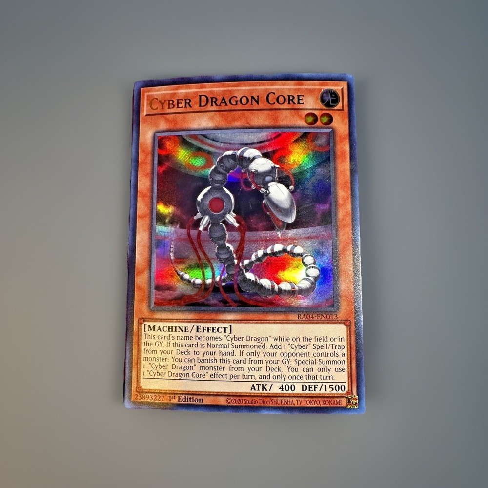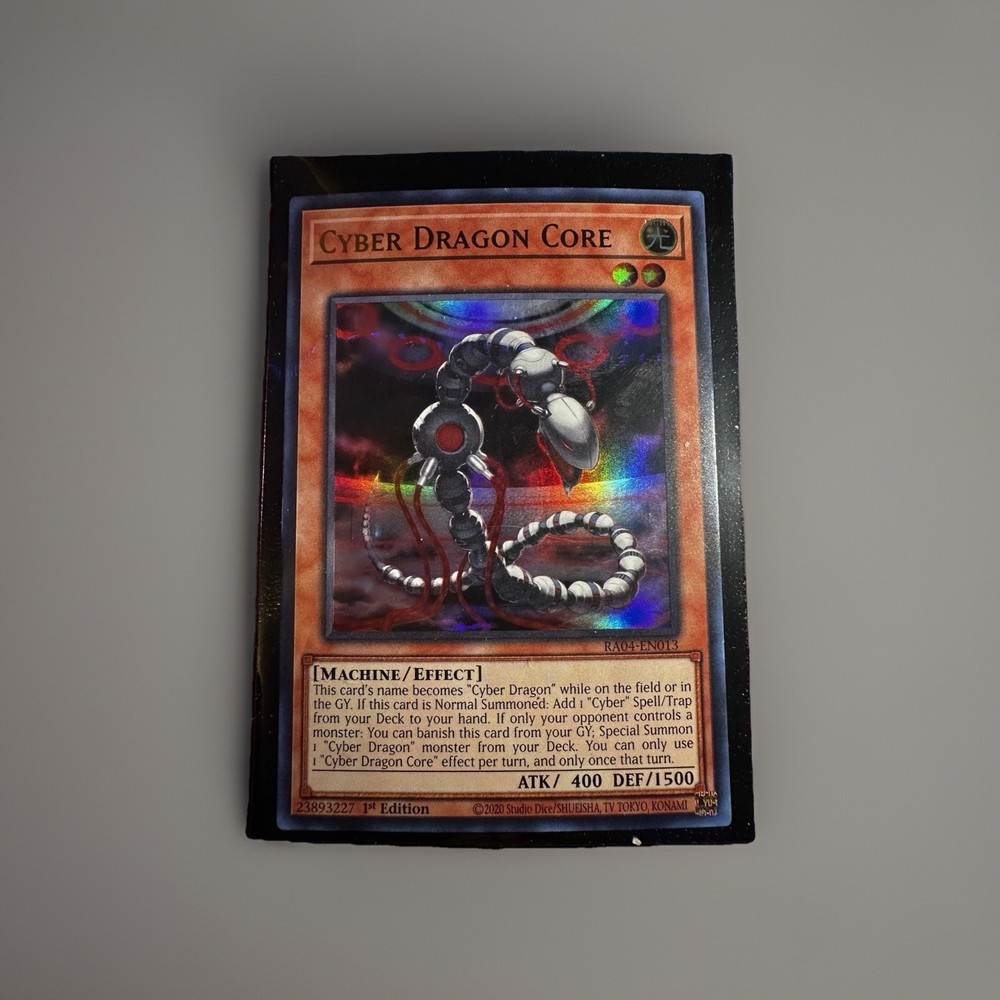 The Cyber Dragon Core 1st Edition Quarter Century Secret Rare card is a highly sought-after collectible in the Yu-Gi-Oh! TCG world. Manufactured by Konami as part of the - Yugi - set, this machine-type creature card features the iconic Cyber Dragon design. As a secret rare card with the card number RA04-EN013, it holds significant value among collectors and players alike. This 1st Edition card offers unique gameplay abilities and is a must-have for any serious Yu-Gi-Oh! card collector.