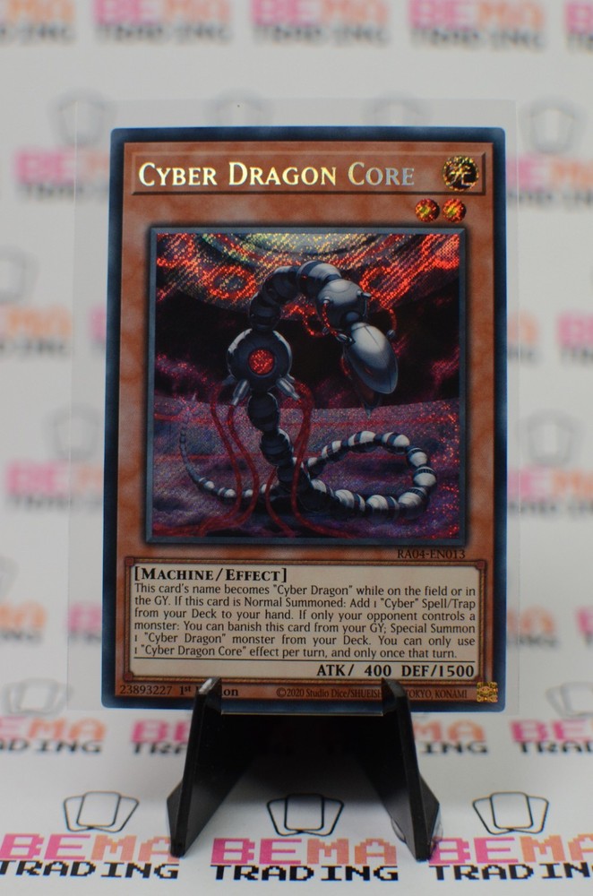 Unleash the power of Cyber Dragon Core, a Secret Rare treasure from the Quarter Century Stampede set, card number RA04-EN013. A must-have for any Yu-Gi-Oh! TCG enthusiast, this card features the iconic Machine creature type with an impressive 1500 Defense/Toughness and a striking 400 Attack/Power. Its Effect card type adds a dynamic edge to your gameplay, ensuring your deck remains a formidable force in any duel. Cyber Dragon Core comes in English language and boasts the sought-after 1st Edition stamp, confirming its authenticity and collectability. Proudly manufactured by Konami, this card is a testament to the strategic depth and excitement the Yu-Gi-Oh! TCG offers. Elevate your collection and experience the lightAttribute/MTG of this unique cybernetic beast.