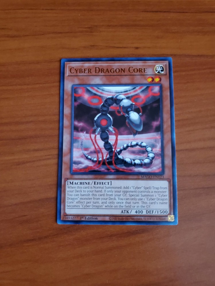 Yugioh Maximum Gold 1st Edition - MAGO-EN123 - Cyber Dragon Core Condition: NM - MINT Shipping: The card will be carefully shipped for via USPS within 48 business hours of payment. Check out my eBay store for more great cards. I list new cards nearly every day.