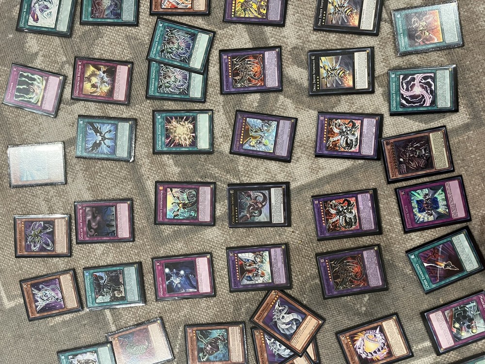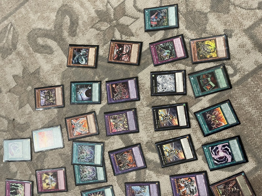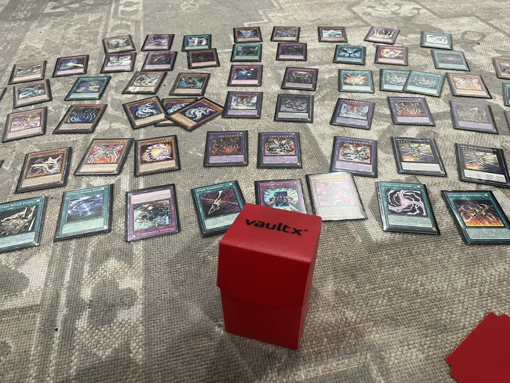68 total cards Includes black sleeves+ red card box with divider Deck- 24 total Cyber dragon x3 Cyber dragon drei Cyber phoenix x2 Cyber dragon vier Cyber dark edge Attatchment cybern Cyber dragon herz Cyber valley x2 Proto cyber dragon Gomel makami, the ferocious fanged fortress Cyber dark horn Cyber dragon core Machine ruinforce Cyber dark cannon Gizmek Uka, the festive fox fecundity Gizmek orochi, the serpentine sky slasher Cyber Pharos Cyberdark claw Cyber dragon nachster Gale dogra Cyber dragon zwei Spells- 19 total Overload fusion Cyber repair plant Cyber dark realm Mystic plasma zone Cyberload fusion x2 Cyberdark inferno 7 completed Limiter removal Cyber dark impact x2 Power bond Evolution burst Cybernetic horizon cyber eternal Fusion deployment Machine duplication Fusion tag Traps -13 total Infinite impermanence Magical cylinders Cyber shadow gardna Cyber dark invasion Call of the haunted Memory loss Trap jammer Orcustrated release Paleozoic canadia Cybernetic revolution Drowning mirror force Cybernetic overflow Extra deck- 12 total Cyber end dragon Cyber dragon infinity Cyber end dragon x2 Cyberdarkness dragon Cyber dark dragon x2 Chineratech over dragon x3 Drill driver vespenato x2 Tornado dragon