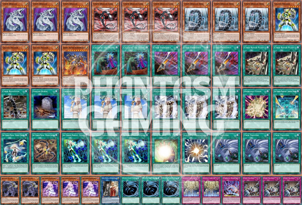 Deck Name: Cyber Dragon (Danger!) (B) # Main Deck (40) 3 - Cyber Dragon 3 - Cyber Dragon Core 3 - Cyber Dragon Herz 3 - Galaxy Soldier 1 - Jizukiru, the Star Destroying Kaiju 2 - Called by the Grave 3 - Cyber Emergency 2 - Cyber Repair Plant 1 - Cyber Revsystem 1 - Foolish Burial 3 - Forbidden Chalice 3 - Machine Duplication 1 - Overload Fusion 1 - Sky Striker Maneuver - Jamming Waves! 1 - Sky Striker Mecha - Hornet Drones 1 - Sky Striker Mecha - Widow Anchor 3 - Sky Striker Mobilize - Engage! 1 - Soul Charge 1 - Super Polymerization 3 - Twin Twisters # Side Deck (15) 2 - Artifact Scythe 3 - Ghost Reaper & Winter Cherries 1 - Isolde, Two Tales of the Noble Knights 3 - Mystical Space Typhoon 2 - Artifact Sanctum 1 - Cybernetic Overflow 3 - Evenly Matched You will receive all of the following cards listed above. Most cards will will be in near mint condition. In the case of certain older cards we will do our best but some cards may be light or even moderatly played in extreme condtions. Those conditions being the card has not been reprinted in a number of years and con no longer be easily purchased in light or near mint condition. Set, Rarity, and Edition will vary and cannot be special requested. These lists are constructed with least expensive rarities we have available in stock. All cards are play legal copies. Note: If purchasing a Yugioh Deck all Speed duel cards are 100% legal at all levels of play. Store Policies Here at PMG_LLC , we pride ourselves on having the best customer service around. If you have any questions or can't seem to find something that you want please do not hesitate to contact us. We will do our best to respond to all questions within one business day. Hours of Operation: Monday-Friday: 2:30pm - 10:00pm Saturday- 10:00am - 8:00pm Sunday 11:00am - 5:30pm Note: We are closed all national holidays. Info: Thank you for choosing PMG_LLC . We appreciate your business. We ship Monday through Friday to make sure you get your deck as quickly as possible. All orders priority orders can use combined shipping. In order to use the combined shipping your whole purchase needs to be checked out as one order. We ship once we have received your payment and payment has cleared. As always if you have any questions or concerns please feel free to contact us via email. Shipping Information: We ship Monday through Friday, barring national holidays during which the United States Postal Service is closed. If you purchase a card on Friday or Saturday please bear in mind it will not ship until Monday. US Shipping: First Class Mail : Free. Comes with tracking information. Priority Mail with Delivery Confirmation : $9.99 All orders are shipped in appropriate protective material inside bubble mailers. International Shipping: We do not offer international Shipping Return Policy: You must return items sold and fulfilled by PMG_LLC within 30 days of delivery to be eligible for a refund. Returns which are damaged in the mail due to improper return packaging will receive partial refunds. We will process a full refund for all items returned in their original condition. In order for us to process your full refund you must include the full name associated with the order as well as the eBay order number inside the return packaging. We will not process returns which do not include the buyer's name and order number. Requirements: Please return items with the original plastic packaging. Failure to do so may result in a partial refund. Also you must inform us of any returns you may wish to process before sending them back. Any items simply send back to us without prior contact will not be eligible for refunds. Important Notes Remember that to benefit from our domestic combined shipping on priority orders you must to pay in a single payment. If you place two separate priority orders you will be charged the $7.50 shipping fee for both orders. If you place multiple orders for Priority shipping you will be charged the corresponding shipping costs for each order, even if you place the orders on the same day. We do not refund shipping costs as we tend to package orders throughout the day and may not notice that you would otherwise have qualified for combined shipping. We want to provide you with 5 Star service and earn your Positive Feedback, so if for any reason you are not happy with your transaction, contact us before leaving feedback. Business Day - Our business day runs from Monday to Friday from 9am to 4pm, excluding US national holidays. Any orders placed or payments cleared less than 4 hours before the close of business will be considered orders from the following business day.