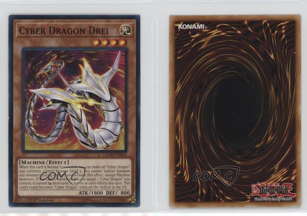 2017 Yu-Gi-Oh! Legendary Dragon Decks - [Base] - 1st Edition #LEDD-ENB03 Cyber Dragon Drei COMC Item: 229568249 - YuGiOh Card - Featuring Cyber Dragon Drei Search for more: 2017 Yu-Gi-Oh! Legendary Dragon Decks Search for more: 2017 Yu-Gi-Oh! Legendary Dragon Decks - [Base] - 1st Edition View all of our Listings Auctions Buy It Now About Us Located in the beautiful Pacific Northwest, COMC (Check Out My Cards) is the world's largest consignment service for trading card singles. More than 10,000 people have used our consignment service to list over 50 million trading cards. Find out how we can help you consign your items on eBay by contacting us through eBay messaging. COMC -- "The Safe & Easy Way to Buy & Sell" Raw Condition for Modern Cards Unless otherwise noted, raw modern cards are listed in Near Mint-Mint condition or better. A NM-MT card appears to be Mint at first glance, but upon closer inspection, may exhibit some of the following: minor print defects (e.g. roller marks, print line, dimple), minor scratches, slight edge wear, and slight corner wear. Centering is clearly visible in the images provided and does not factor into our condition assessment. Raw Condition for Vintage Cards Unless otherwise noted, raw vintage cards are listed in Excellent condition or better. An EX card may exhibit some of the following: minor rounding of corners, surface wear, print defects, light scratches, and slight edge wear/chipping. Centering is clearly visible in the images provided and does not factor into our condition assessment. Domestic Shipping Combined shipping for multiple items is available. To receive combined shipping, please ensure all desired items are in your eBay shopping cart before proceeding to checkout. eBay limits orders to 40 items per order. We automatically combine multiple orders placed on the same day. If you place multiple orders on the same day, please contact us to request a refund of applicable shipping costs. Signature confirmation may be required on invoices over $400. All cards are protected and shipped securely. International Shipping COMC offers eBay's International Shipping (EIS) for international orders under $2,500* (see country exceptions below). All duties and import fees are paid at checkout; in the rare event that there are additional import fees upon delivery, these are borne by the buyer. EIS packages route through a shipping hub in Erlanger, KY before shipping to their final destination. Please note that EIS does not allow for combined shipments. The shipping rates are determined by eBay and cannot be adjusted. *Maximum sale price exceptions: Colombia, Kuwait ($2,000); Taiwan ($1,539); Chile, Costa Rica, Guatemala, Honduras, Trinidad and Tobago ($1,000); Antigua and Barbuda, Aruba, Belize, Dominica, Grenada, Philippines, Saint Kitts and Nevis, Saint Lucia, Montserrat, Turks and Caicos Islands ($500); Dominican Republic, El Salvador ($200). Please request a shipping quote through eBay messaging for orders that exceed the maximum sale price supported by eBay's International Shipping. You will be responsible for all duties and import fees for international orders shipped outside the EIS. All cards are protected and shipped securely. Payment COMC does not accept offers on our cards through our eBay storefront. COMC utilizes eBay’s managed payments system. If you are experiencing difficulties making a payment, please contact eBay for assistance. Return Policy Returns are only accepted on the rare occasion the item is not as described. If you are making a return, please initiate the return process through eBay so a mailing label can be provided for you. Prior to listing, our expert team carefully assessed this item to represent it accurately. Please review the description and high-definition images prior to purchasing to ensure this item meets your satisfaction. We welcome you to contact us if you have further questions about this item. Trust and Integrity COMC carefully assesses each item consigned to us to prevent fraudulent items from entering the marketplace. If you believe an item offered on COMC may be fraudulent, please contact us with details so we can investigate the issue. Items we determine are outside our supported items policy may be removed. Last Modified: 7/11/2025 3:24:43 AM PDT
