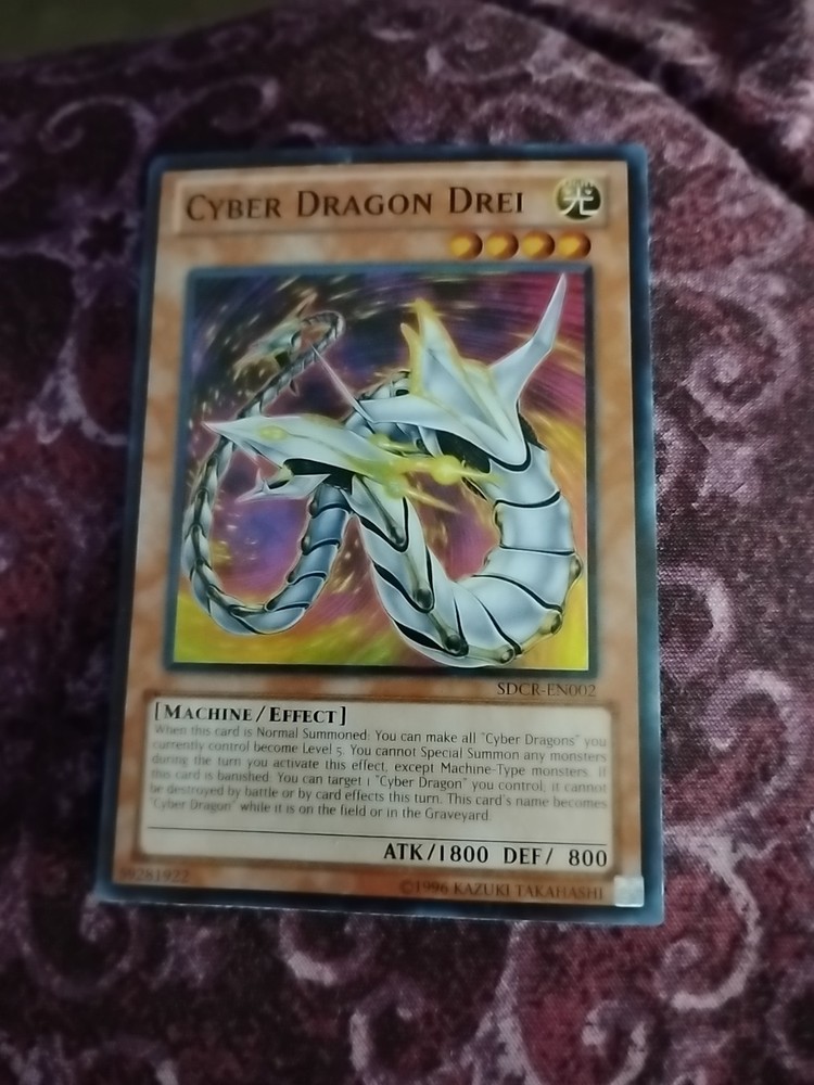 Elevate your Yu-Gi-Oh! TCG arsenal with the Cyber Dragon Drei SDCR-EN002, from the Structure Deck: Cyber Dragon Revolution-Unlimited Edition. As a Super Rare card, it stands out with its distinctive foil and texture that makes it a standout in any collection. The Machine-type creature boasts an attack power of 1800 and a defense strength of 800, showcasing its might in the battleground. Konami's craftsmanship ensures the card's English language rendition is both collectible and playable. Its Effect card type adds strategic depth to your gameplay, allowing for intricate maneuvers and spellbinding combinations. Whether for competitive play or as a treasured piece in your collection, Cyber Dragon Drei is a must-have for enthusiasts.