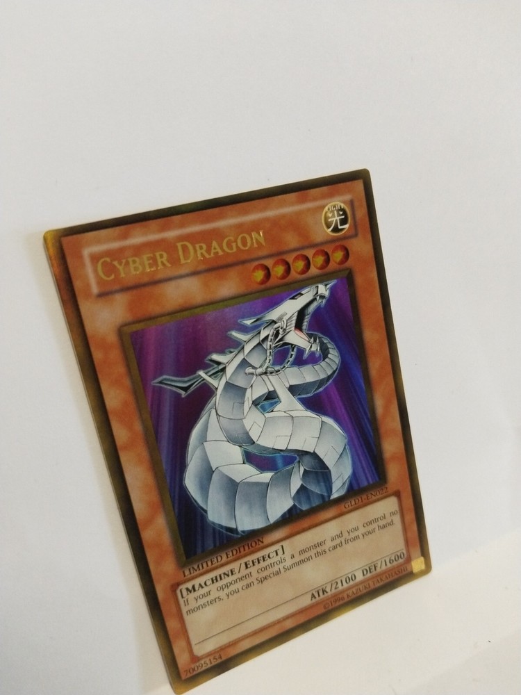 The Cyber Dragon GLD1-EN022 Gold Rare Limited Edition Yu-Gi-Oh card from the Gold Series is a must-have for any collector or player. This Japanese-sized foil card features a Light attribute Machine monster with powerful effects, making it a valuable addition to any deck. Manufactured by Konami, this English language card is suitable for ages 4 and up, adding excitement to your Yu-Gi-Oh! TCG games. Don't miss out on adding this rare and sought-after card to your collection today.