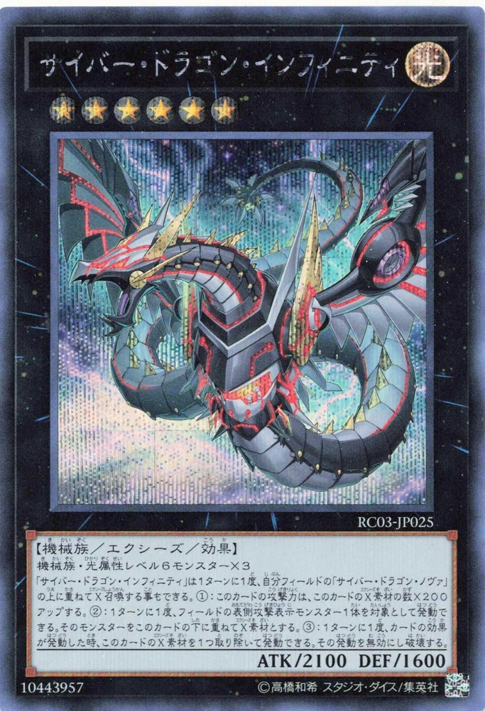 Level Up Games MD This listing is for 1 | Cyber Dragon Infinity B from the Yu-Gi-Oh! Rarity Collection Premium Gold Edition and is FOIL. Any condition issues such as: Creases, foil scuffing, water damage, or ink are shown in the photos. All cards are authentic. Card Details: Japanese Foil Below are listed item specifics Set: Rarity Collection Premium Gold Edition Language: Japanese Treatment: Foil Other: Prismatic Secret Rare Additional Information We can be contacted at any time through eBay messages if you have any questions, comments, or product requests. We will respond to you within 24 hours, Monday through Friday, and do our best to help in any way we can. We encourage our customers to contact us with any questions or concerns. We'd like to be sure you are completely satisfied with your purchase. Payment: We accept payment through eBay Shipping: Economy shipping is included for orders under $20.00. Tracked shipping is included for orders over $20.00. International shipping goes through eBay's International Shipping Program. Returns: We offer free returns; all items must be returned to receive a full refund. Support: If you are unsatisfied for any reason or require additional information about this item, please reach out to us and we will be happy to answer any and all questions.