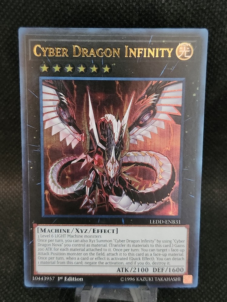 Cyber Dragon Infinity Legendary Dragon Decks (LEDD-ENB31) Ultra Rare 1st Edition Near Mint Spend $20+ on Yugioh singles, get 1 bonus ultra rare free Spend $30+ on Yugioh singles, get an additional secret rare free Spend $40+ on Yugioh singles, get an additional booster pack free All cards I sell are 100% genuine, if you have any questions or concerns message me and I will respond asap.