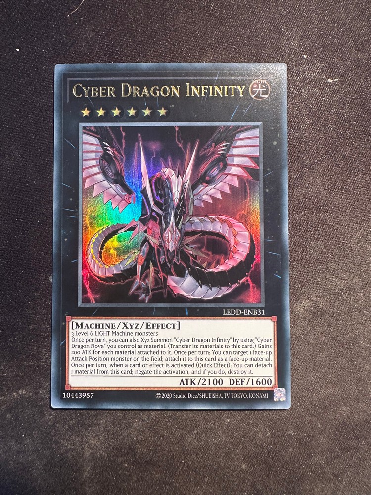Cyber Dragon Infinity - LEDD-ENB31 - Ultra Rare N/M Card is Unlimited Each Card is in Near Mint Condition Combined Shipping is offered on all of my TCG Listings. When Checking out with multiple cards in your cart, click ‘Request total from seller’. This will allow me to combine the shipping for multiple cards if purchased together. If this does not show up for you, then please message me and I’ll create a listing for your order. Any Further Questions Please Message Me Thanks