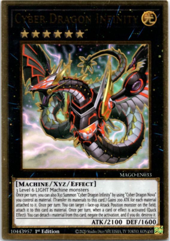Cyber Dragon Infinity - MAGO-EN033 - Premium Gold Rare - 1st Edition - Yugioh Mint Condition Terms and Conditions • Sorry no international buyers • PAYPAL ONLY. Paypal Accepts credit card. • If you have any questions or quieries, just shoot me a message We are not responsible for any lost items during transit. Buyers automatically quality for free tracking when order is over $40. For combined shipping to save on shipping cost, PLEASE commit to the purchase of those items via then select the promotion postage option. AMAZING VALUE ! ROCK BOTTOM PRICE ! 100% AUTHENTIC Buyers automatically quality for free tracking when order is over $40 Items are usually sent securely double sleeved and with thin cardboard paddings if required. Otherwise , You may also add a top loader to your purchase ! Toploader: https://www.ebay.com.au/itm/352812399479 Shipping fee is $1 for the item but it will be deducted when you check out using combined shipping !