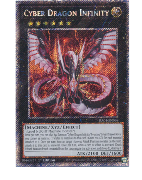 This Cyber Dragon Infinity Platinum Secret Rare is a must-have for collectors and duelists! The card arrived in fantastic Near Mint condition, just as described—straight from the pack with minimal factory flaws. Shipping was fast, processed within two business days, and the seller offers reliable options like tracked delivery. US buyers should check tariffs, but overall, a smooth purchase experience. Highly recommended for Yu-Gi-Oh! fans!