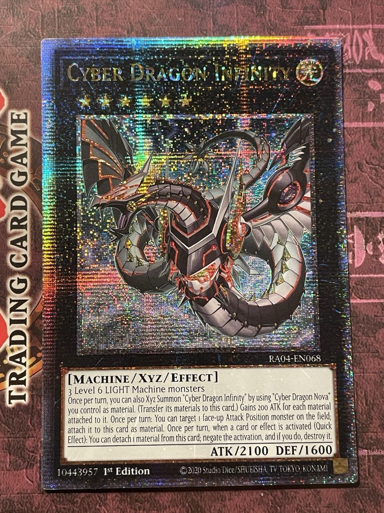 1x Cyber Dragon Infinity - RA04-EN068 - Quarter Century Secret Rare - 1st Ed. - NM. Condition is near mint. Shipped with USPS. Fast shipping with tracking and will be sent in a top loader. Thank you!