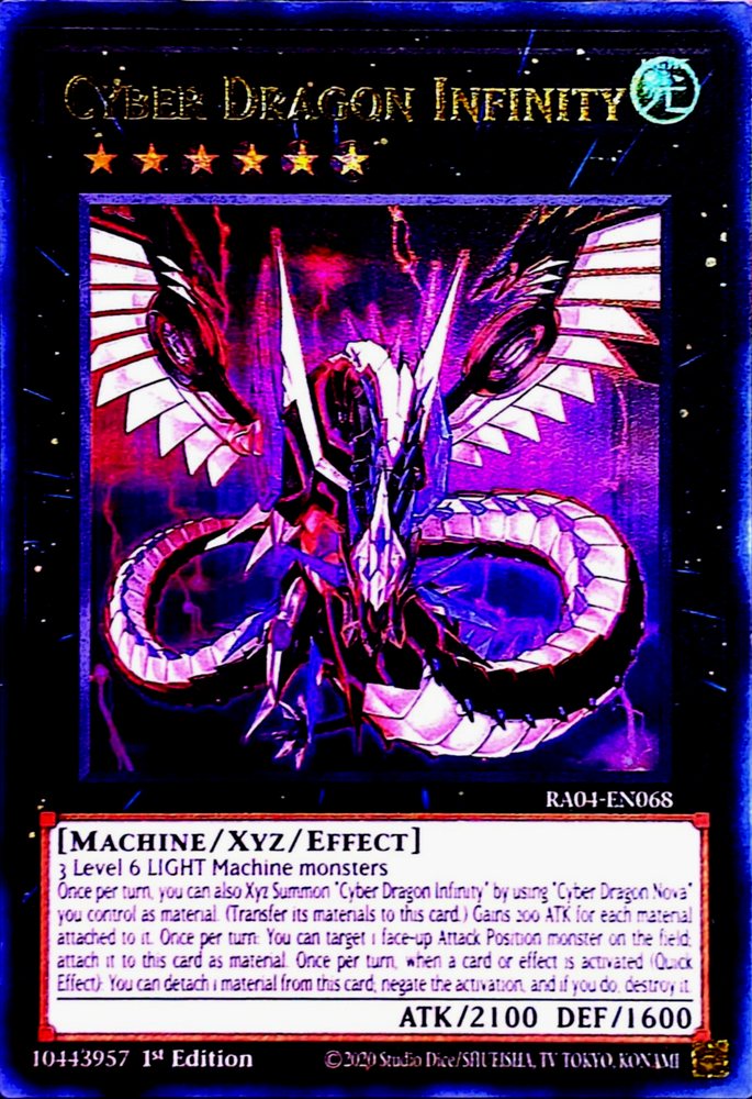 Bluefires Stuff daniel8769-2008 has 99.1% Positive Feedback Welcome! At my store, you will find collectibles and refurbished tech. From recycled memory chips and processors to a variety of storage drives and rebuilt desktops and laptops. I try to keep a variety of products available for everyone. From a single Yu-Gi-Oh! card to a full themed structure Cyber Dragon Infinity RA04-EN068. C ondition is "New". Shipped with USPS. Item Description Buyers Note: Near Mint for any collector or player. This card is in Near Mint or better. Card Name: Cyber Dragon Infinity RA04-EN068 - 1st Edition Set: RA04 - Quarter Century Stampede Quantity: 1 Edition: 1st Rarity: Ultra Rare Condition: NM Payment Information & Terms of Sale Credit Cards: We accept Visa, MasterCard, American Express, and Discover Card through PayPal. Payments are due within 3 days of purchase date! Sorry, no exceptions! Orders are shipped within 24 hours of payment. Orders placed & paid after 12noon PST on Fridays, weekends (Saturdays & Sundays), and Holidays are shipped the following business day. Cards shipped First Class Mail are in a hard plastic top loader with a Waterproof/Tear resistant Bubble Envelope w/Delivery Confirmation, NO INSURANCE! I RECOMEND THIS FOR DELIVERIES OUTSIDE THE CONTENINTAL USA. Continental USA & select countries (Canada, Europe, Australia) Residents of Puerto Rico can only use this service. Cards shipped eBay Standard Envelope for Trading Cards up to $20 are mailed in a standard letter envelope with a hard plastic top loader w/Delivery Confirmation. Delivery can take up to 3 to 5 business days . Continental USA & select countries (Canada, Europe, Australia) THIS SERVICE IS NOT AVAILABLE TO ADDRESSES TO PUERTO RICO. Cards shipped with free shipping are mailed in a standard letter envelope with a hard plastic top loader w/Delivery Confirmation. Delivery can take up to 3 to 5 business days . Continental USA & select countries (Canada, Europe, Australia) This service is excluded for Puerto Rico . I ship Worldwide! I am not responsible for any International customs, taxes, fees, etc. It’s the buyer’s full responsibility. Give up to 30 days time for deliveries outside the Continental U.S. I have no control over administration issues of services provided by other countries and their governments. Once product leaves the U.S please be patient if delivery is delayed. Condition Guide: I do not sell any cards that are in MINT condition, the best condition that we offer is near mint. Near Mint (NM) - Cards in Near Mint condition show minimal to no wear from shuffling, play or handling and can have a nearly unmarked surface, crisp corners and unblemished edges outside of a few minimal flaws. A Near Mint card may have a tiny edge nick or a tiny scratch or two, but overall look nearly un-played with no major defects or flaws. Lightly Played (LP) - Cards in Lightly Played condition may have minor border or corner wear or even just slight scuffs or scratches. There are no major defects such as water damage, bends or issues with the structural integrity of the card. Noticeable imperfections are okay, but none should be too severe or at too high a volume. Moderately Played (MP) - Cards in Moderately Played condition exhibit condition issues visible at a casual glance. Cards in Moderately Played condition can have border wear, corner wear, scratching or scuffing, creases or whitening, minor dirt buildup or any combination of mild examples of these marks. A Moderately Played card may have some form of a more major marking, such as spot water damage or creasing that doesnʼt affect card integrity, but not in combination with other issues such as scratches, scuffs or border/edge wear and not impacting a large area of the card. Heavily Played (HP) - Cards in Heavily Played condition show a severe amount of wear. Heavily Played condition can include cards that have major creasing, major whitening, major border wear or any combination of those flaws. (These flaws cannot prevent the card from being tournament playable when sleeved.) Damaged - Cards in Damaged condition can exhibit a tear, bend or crease that may make the card illegal for tournament play, even in a sleeve. Cards in Damaged condition may have extreme border wear, extreme corner wear, heavy scratching or scuffing, folds, creases or tears or other damages that impacts the structural integrity of the card