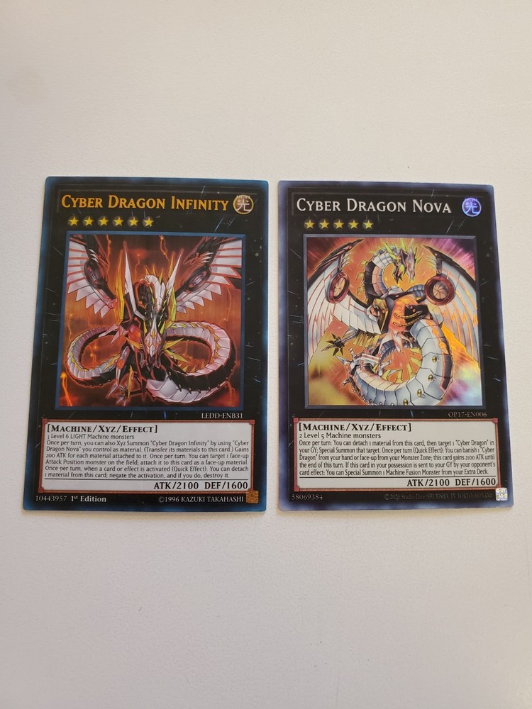 Set of 2 Cyber Dragon XYZ yugioh cards from OTS Tournament Pack 17 unlimited and Legendary Dragon Decks 1st Edition Yugioh Playset Near Mint Condition.