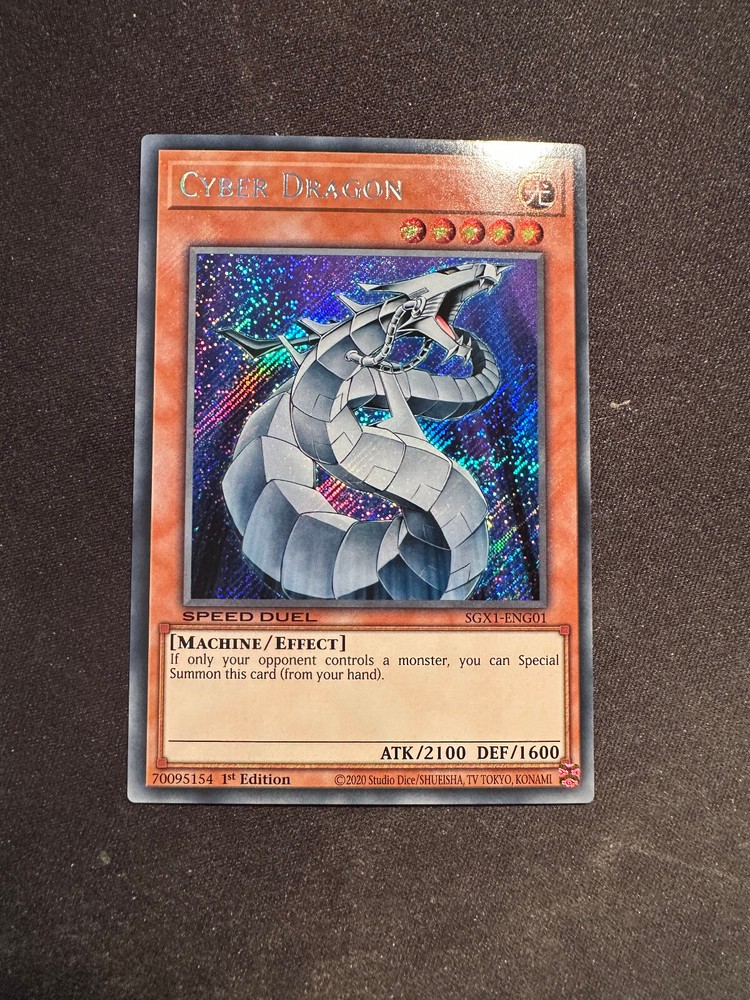 Cyber Dragon - SGX1-ENG01 - Secret Rare - 1st Edition - Speed Duel N/M Card is 1st Edition Cards are in Near Mint Condition Combined Shipping is offered on all of my TCG Listings. When Checking out with multiple cards in your cart, click ‘Request total from seller’. This will allow me to combine the shipping for multiple cards if purchased together. If this does not show up for you, then please message me and I’ll create a listing for your order. Any Further Questions Please Message Me Thanks