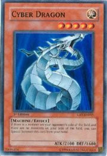 Game: Yu-Gi-Oh! Card: Cyber Dragon - Unlimited Set: Cybernetic Revolution Condition: Heavily Played Card Details Collector Number: CRV-EN015 Rarity: Super Rare Card Type: Effect Monster Monster Type: Machine Attack: 2100 Defense: 1600 Description: If there is a monster on your opponent''s side of the field and there are no monsters on your side of the field, you can Special Summon this card from your hand. Attribute: LIGHT Finish: Regular