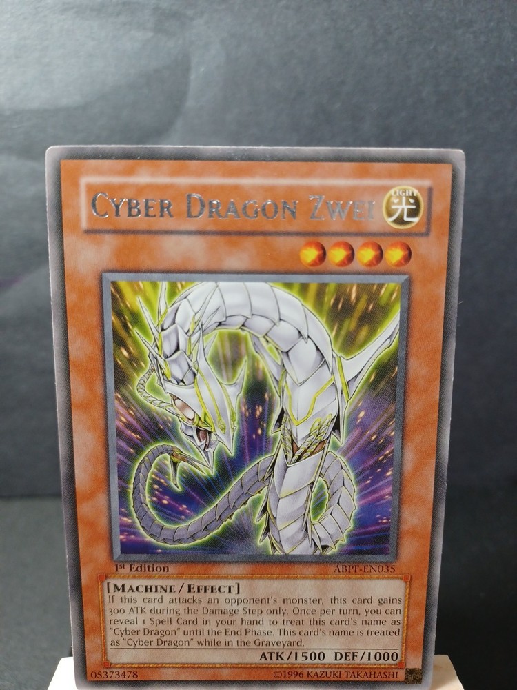 Cyber Dragon Zwei 1st Edition Rare from ABPF in MP Condition. Please see pictures and feel free to ask any questions prior to purchase. All orders usually ship within 24 hours except on days USPS is closed. Most orders under $20 will ship via eBay standard envelope, orders over $20 will ship via USPS Ground Advantage. We do everything we can to ensure your purchase arrives in a timely manner and in the same condition shown on the listing. Please check out our eBay store as well for more cards and discounts.