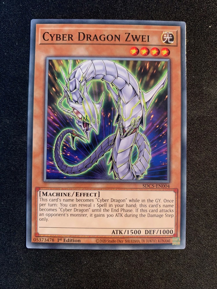 Cyber Dragon Zwei - SDCS-EN004 - Cyber Strke N/M Card is 1st Edition Card is in Near Mint Condition Pulled from a Recently Opened Structure Deck Combined Shipping is offered on all of my TCG Listings. When Checking out with multiple cards in your cart, click ‘Request total from seller’. This will allow me to combine the shipping for multiple cards if purchased together. If this does not show up for you, then please message me and I’ll create a listing for your order. Any Further Questions Please Message Me Thanks