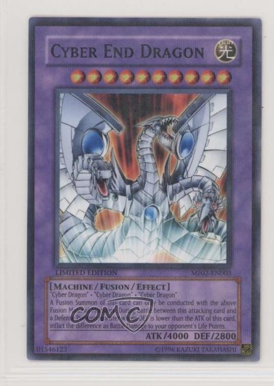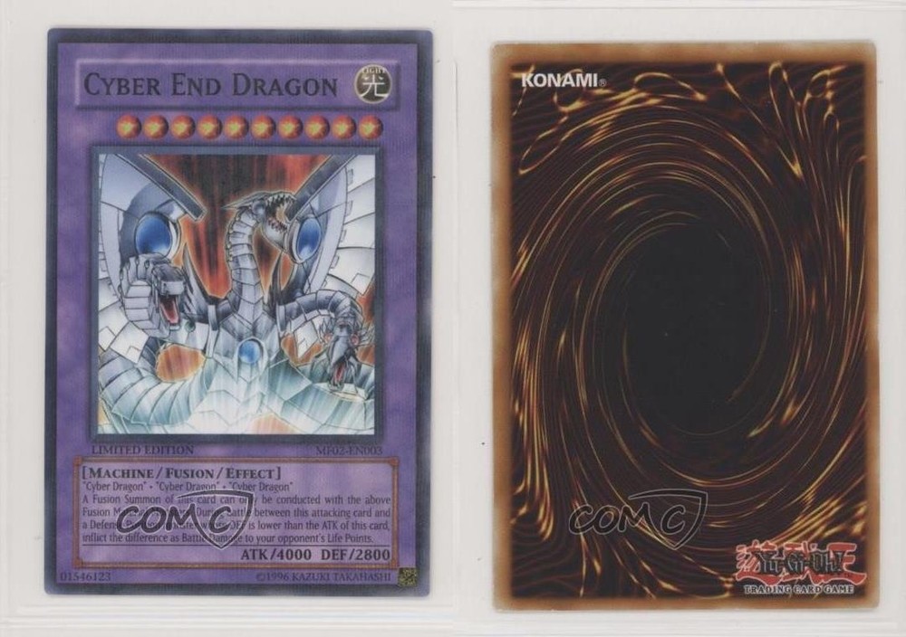 2006 Yu-Gi-Oh! - Mattel Action Figure Promos: Series 2 - [Base] - Limited Edition #MF02-EN003 Cyber End Dragon COMC Item: 70929045 - YuGiOh Card - Featuring Cyber End Dragon Search for more: 2006 Yu-Gi-Oh! - Mattel Action Figure Promos: Series 2 Search for more: 2006 Yu-Gi-Oh! - Mattel Action Figure Promos: Series 2 - [Base] - Limited Edition View all of our Listings Auctions Buy It Now About Us Located in the beautiful Pacific Northwest, COMC (Check Out My Cards) is the world's largest consignment service for trading card singles. More than 10,000 people have used our consignment service to list over 50 million trading cards. Find out how we can help you consign your items on eBay by contacting us through eBay messaging. COMC -- "The Safe & Easy Way to Buy & Sell" Raw Condition for Modern Cards Unless otherwise noted, raw modern cards are listed in Near Mint-Mint condition or better. A NM-MT card appears to be Mint at first glance, but upon closer inspection, may exhibit some of the following: minor print defects (e.g. roller marks, print line, dimple), minor scratches, slight edge wear, and slight corner wear. Centering is clearly visible in the images provided and does not factor into our condition assessment. Raw Condition for Vintage Cards Unless otherwise noted, raw vintage cards are listed in Excellent condition or better. An EX card may exhibit some of the following: minor rounding of corners, surface wear, print defects, light scratches, and slight edge wear/chipping. Centering is clearly visible in the images provided and does not factor into our condition assessment. Domestic Shipping Combined shipping for multiple items is available. To receive combined shipping, please ensure all desired items are in your eBay shopping cart before proceeding to checkout. eBay limits orders to 40 items per order. We automatically combine multiple orders placed on the same day. If you place multiple orders on the same day, please contact us to request a refund of applicable shipping costs. Signature confirmation may be required on invoices over $400. All cards are protected and shipped securely. International Shipping COMC offers eBay's International Shipping (EIS) for international orders under $2,500* (see country exceptions below). All duties and import fees are paid at checkout; in the rare event that there are additional import fees upon delivery, these are borne by the buyer. EIS packages route through a shipping hub in Erlanger, KY before shipping to their final destination. Please note that EIS does not allow for combined shipments. The shipping rates are determined by eBay and cannot be adjusted. *Maximum sale price exceptions: Colombia, Kuwait ($2,000); Taiwan ($1,539); Chile, Costa Rica, Guatemala, Honduras, Trinidad and Tobago ($1,000); Antigua and Barbuda, Aruba, Belize, Dominica, Grenada, Philippines, Saint Kitts and Nevis, Saint Lucia, Montserrat, Turks and Caicos Islands ($500); Dominican Republic, El Salvador ($200). Please request a shipping quote through eBay messaging for orders that exceed the maximum sale price supported by eBay's International Shipping. You will be responsible for all duties and import fees for international orders shipped outside the EIS. All cards are protected and shipped securely. Payment COMC does not accept offers on our cards through our eBay storefront. COMC utilizes eBay’s managed payments system. If you are experiencing difficulties making a payment, please contact eBay for assistance. Return Policy Returns are only accepted on the rare occasion the item is not as described. If you are making a return, please initiate the return process through eBay so a mailing label can be provided for you. Prior to listing, our expert team carefully assessed this item to represent it accurately. Please review the description and high-definition images prior to purchasing to ensure this item meets your satisfaction. We welcome you to contact us if you have further questions about this item. Trust and Integrity COMC carefully assesses each item consigned to us to prevent fraudulent items from entering the marketplace. If you believe an item offered on COMC may be fraudulent, please contact us with details so we can investigate the issue. Items we determine are outside our supported items policy may be removed. Last Modified: 5/29/2025 9:36:03 PM PDT