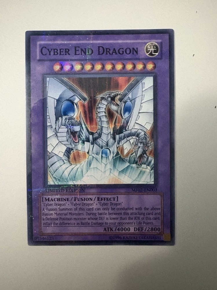 This Cyber End Dragon figure is an awesome limited edition collectible! The detail is amazing, and even though it's moderately played, it still looks fantastic. The seller is super reliable with years of experience, so you know you're getting a legit piece. Perfect for Yu-Gi-Oh fans or collectors who want a rare promo. Super happy with this purchase—definitely worth it!