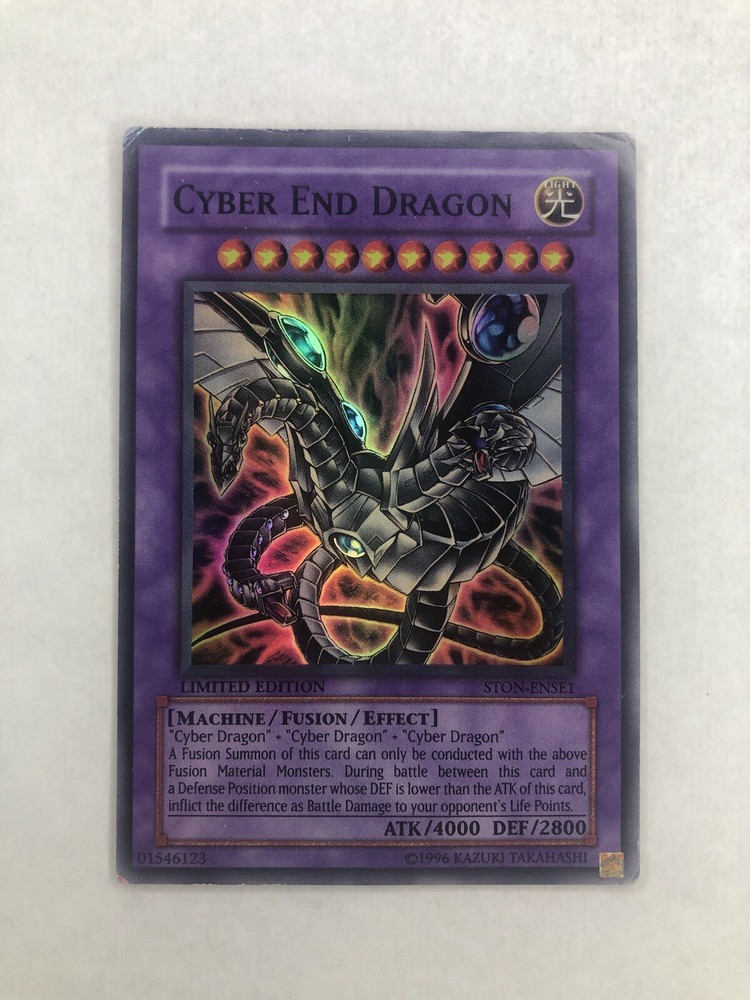 Cyber End Dragon - STON-ENSE1 - Super Rare - Limited Edition (Moderately Played) This card has been a part of my collection for many years. The card was put into a sleeve and kept in a binder to preserve its condition and as with all of my used cards; they will be graded from Near Mint / Lightly Played / Moderately Played / Heavily Played / Damaged and will be stated on the title of this listing. I am very strict when it comes to grading the cards condition and judge them as follows; Near Mint - Almost no visible Scuffs/Scratches Lightly Played - Whitening on Edges/Corners - Dings Moderately Played - Corners/Edges are visibly Scuffed Heavily Played - Foil peeling off / Edges Corroded Damaged - Scratches / Dents / Creases / Peeled Please refer to the photo taken to see the cards condition and if you would like me to take more photos of the corners, edges or even the back then please do not hesitate to ask as I will gladly do that for you. Since there are so many cards for me to list, I didn’t bother taking multiple photos unless a customer requests me to do so which I will happily do. I have stopped duelling with my cards for over 10 years now and have kept all my cards as part of my collection as a memory of a time where I had fun trading and duelling with my friends back in school for that nostalgic feeling. I have recently sparked my interest and passion for Yu-Gi-Oh again and wanted to sell my old cards so that I can re-invest in newer cards/sets to either produce content or simply have fun opening packs and feeling that excitement of not knowing what I will get. When a order is placed; All cards will be put into sleeves and then into a plastic top loader for maximum protection. A sticky tab will be attached to the sleeve of the card so it is easy for you to pull out of the top loader without risking any damage to the card itself. Washi tape is put on the opening end of the top loader to avoid having the card slip out during delivery. Washi tape is non-sticky and can be removed easily without leaving any sticky residue so that the top loader can be reused if necessary. It is then put into a bubble mail and sent off for delivery using Royal Mail whom then will give regular updates of your order. All cards are sent from Birmingham, UK so if you are a UK resident then you should receive your order within a few days. For international customers, you will have to pay extra for delivery to cover the costs and will take longer to reach you. All cards are packaged with great care and quality. If you have any other questions or concerns, please do not hesitate to ask!
