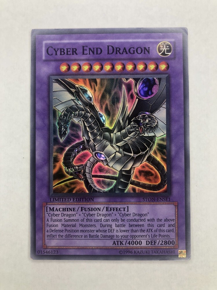 Cyber End Dragon - STON-ENSE1 - Super Rare - Limited Edition (Moderately Played) This card has been a part of my collection for many years. The card was put into a sleeve and kept in a binder to preserve its condition and as with all of my used cards; they will be graded from Near Mint / Lightly Played / Moderately Played / Heavily Played / Damaged and will be stated on the title of this listing. I am very strict when it comes to grading the cards condition and judge them as follows; Near Mint - Almost no visible Scuffs/Scratches Lightly Played - Whitening on Edges/Corners - Dings Moderately Played - Corners/Edges are visibly Scuffed Heavily Played - Foil peeling off / Edges Corroded Damaged - Scratches / Dents / Creases / Peeled Please refer to the photo taken to see the cards condition and if you would like me to take more photos of the corners, edges or even the back then please do not hesitate to ask as I will gladly do that for you. Since there are so many cards for me to list, I didn’t bother taking multiple photos unless a customer requests me to do so which I will happily do. I have stopped duelling with my cards for over 10 years now and have kept all my cards as part of my collection as a memory of a time where I had fun trading and duelling with my friends back in school for that nostalgic feeling. I have recently sparked my interest and passion for Yu-Gi-Oh again and wanted to sell my old cards so that I can re-invest in newer cards/sets to either produce content or simply have fun opening packs and feeling that excitement of not knowing what I will get. When a order is placed; All cards will be put into sleeves and then into a plastic top loader for maximum protection. A sticky tab will be attached to the sleeve of the card so it is easy for you to pull out of the top loader without risking any damage to the card itself. Washi tape is put on the opening end of the top loader to avoid having the card slip out during delivery. Washi tape is non-sticky and can be removed easily without leaving any sticky residue so that the top loader can be reused if necessary. It is then put into a bubble mail and sent off for delivery using Royal Mail whom then will give regular updates of your order. All cards are sent from Birmingham, UK so if you are a UK resident then you should receive your order within a few days. For international customers, you will have to pay extra for delivery to cover the costs and will take longer to reach you. All cards are packaged with great care and quality. If you have any other questions or concerns, please do not hesitate to ask!
