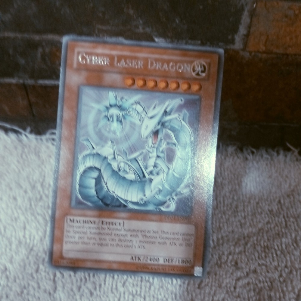 Cyber Laser Dragon DP04-EN003 YuGiOh Duelist Pack: Zane Truesdale card. This card is in near mint condition and will be shipped for free. This card will be shipped in soft plastic protector, with a card board insert, and in a protective card envelope.