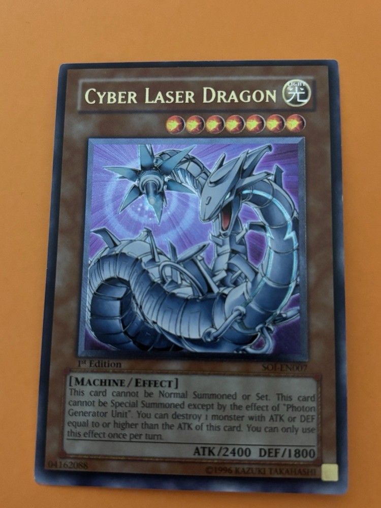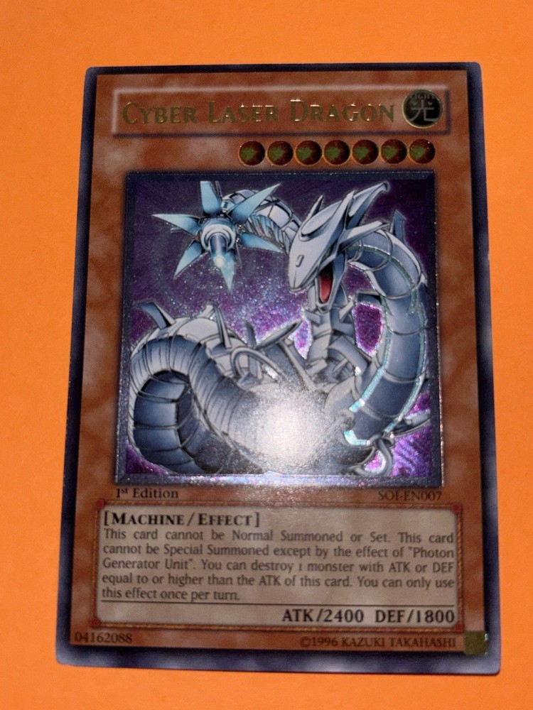 You are bidding on a Cyber Laser Dragon SOI-EN007 1st Edition NM Ultimate Rare Yu-Gi-Oh! Near Mint card. Bid with confidence. I have 100% feedback. Make an offer. I will not reject any offers, only accept them or counter them. And I respond quickly to offers! International buyers are welcome. Be sure to check out my other auctions. Happy Bidding!