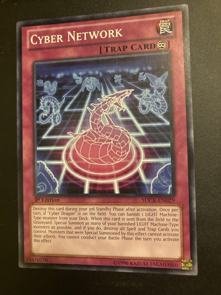 This Cyber Network SDCR-EN029 card from the Cyber Dragon Revolution set is a must-have for any Yu-Gi-Oh! TCG collector. With its black color and regular finish, it's a rare find for fans of the game. The card is in English language and manufactured by Konami, ensuring its quality and authenticity. It's a trap card with a rarity of common/short print, perfect for players and collectors alike. This 1st edition card is suited for ages 6 and up, making it a great addition to any collection. Don't miss out on the chance to add this Cyber Network card to your collection today!