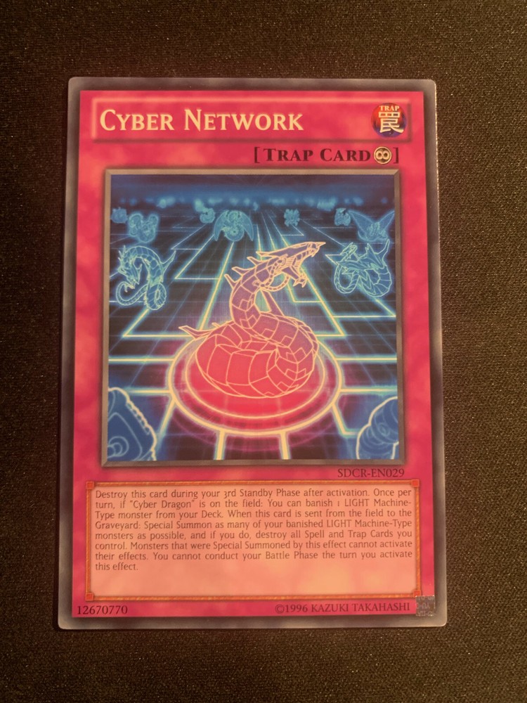 Cyber Network - SDCR-EN029 - Cyber Dragon Revolution N/M Card is Unlimited Card is in Near Mint Condition Pulled from a Recently Opened Structure Deck Combined Shipping is offered on all of my TCG Listings. When Checking out with multiple cards in your cart, click ‘Request total from seller’. This will allow me to combine the shipping for multiple cards if purchased together. If this does not show up for you, then please message me and I’ll create a listing for your order. Any Further Questions Please Message Me Thanks
