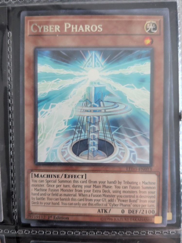 | Card Text | You can Special Summon this card (from your hand) by Tributing 1 Machine monster. Once per turn: You can Fusion Summon 1 Machine Fusion Monster from your Extra Deck, using monsters from your hand or field as Fusion Material. When your Fusion Monster is destroyed by battle: You can banish this card from your GY; add 1 "Power Bond" from your Deck to your hand. You can only use this effect of "Cyber Pharos" once per turn. |