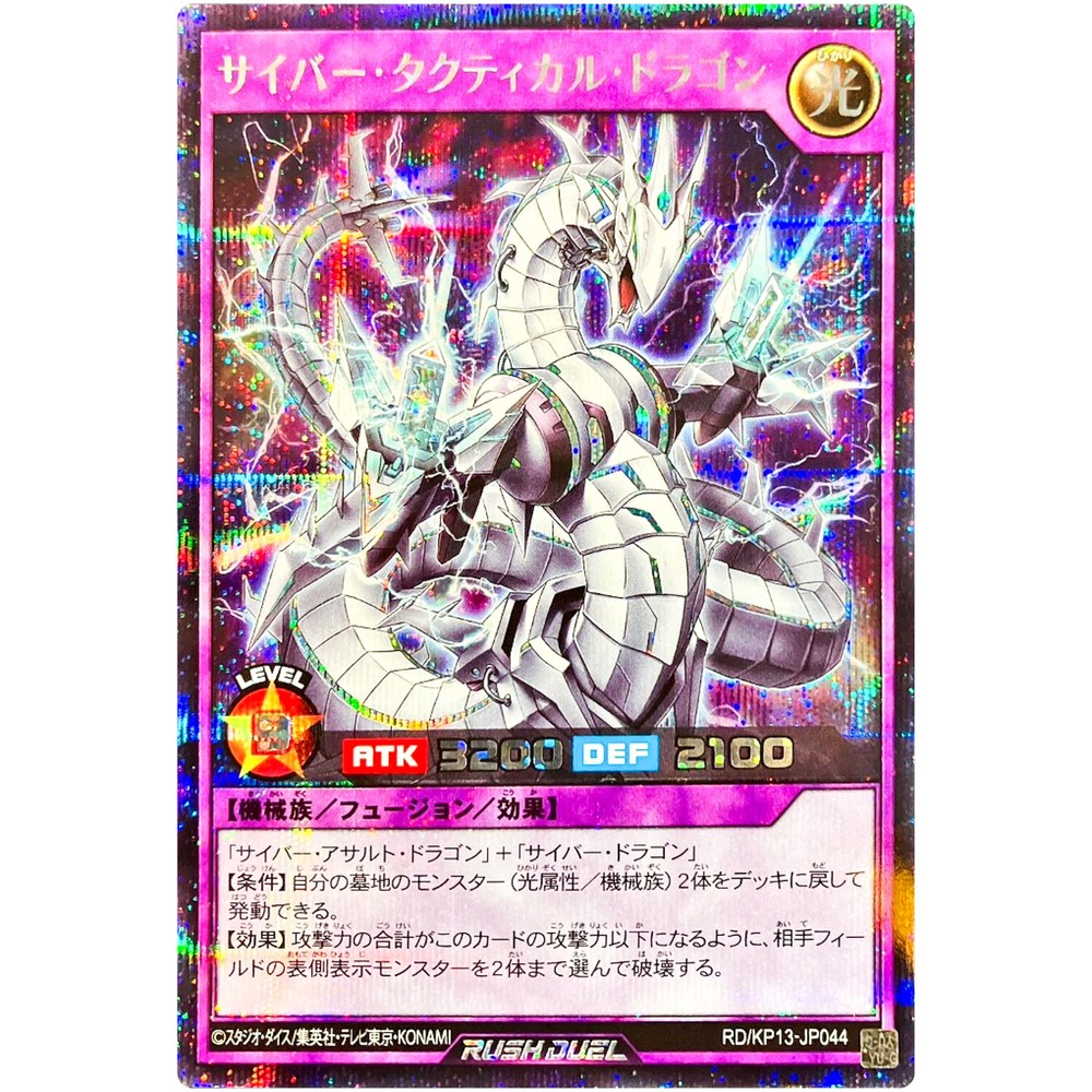 Item Discription RD/KP13-JP044 Cyber Tactical Dragon Front Back Card Name : Cyber Tactical Dragon Character : Cyber Tactical Dragon Rarity : Secret Rare Card Number : RD/KP13-JP044 Set : Oblivion of the Flash Type : Effect Fusion Monster Language : Japanese Card Condition : Near Mint Purchased cards will be clipped with cardboard, waterproofed, and shipped without any scratches or folds. Cards over $20 will be packed even tighter with a loader for each card. Shipping Policy Free shipping worldwide. Free shipping does not include tracking. There is an additional cost of US $4 for tracking. If you purchase cards totaling US $30 or more, you will receive a free tracking number. All of the products will be shipped from Japan. Economy Shipping Air mail ( no tracking ) Free Shipping Delivery time : About 2-4 weeks Standard Shipping Air mail ( with tracking ) US $4 Delivery time : About 2-4 weeks Expedited Shipping FedEx or EMS or DHL ( with tracking ) US $24 Delivery time : About 1-2 weeks Payment Policy We accept all major credit cards and Paypal payments. Return Policy We hope you will love your purchase, houever if you need to return it, we have a 30 day return policy. International Buyers Import duties, taxes, and charges are not included in the item price or shipping cost. These charges are the buyerʼs responsibility. Please check with your countryʼs customs office to determine what these additional costs will be prior to bidding or buying. If the cancellation is due to the buyer, wewill charge a fee. If there is a remote charge for your address, we will charge you for additional shipping. We are honored to receive the eBay Japan Awards 2022! I am thrilled to share that my store has won the eBay Japan Awards 2022 ! This amazing accomplishment wouldnʼt have been possible without our wonderful customers. A heartfelt thank you for your ongoing support. We will continue to improve our services, offering a diverse selection of items and top-notch customer care Thank you for helping us achieve this prestigous recognition, and we look forward to serving you in the future! Copyright ©️ 2023 Animart Japan