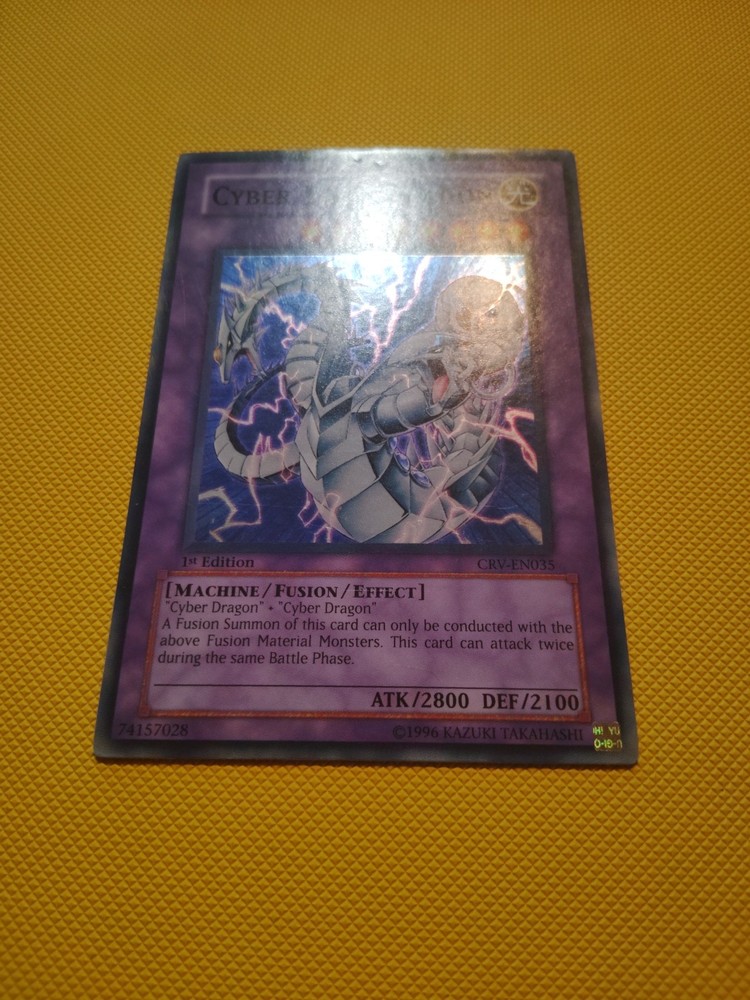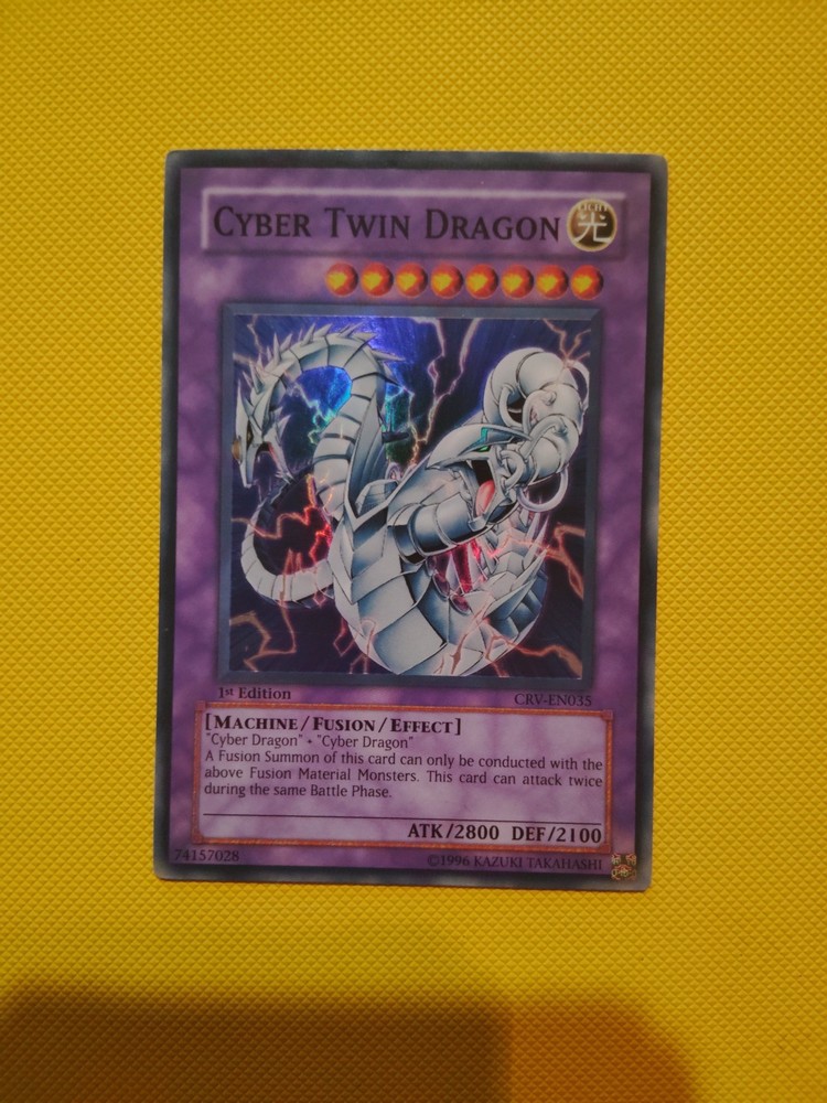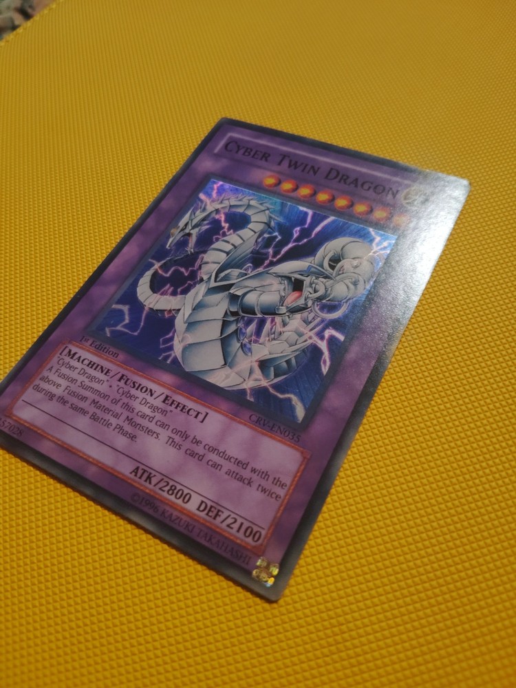 Elevate your Yu-Gi-Oh! TCG collection with the iconic Cyber Twin Dragon CRV-EN035, a must-have for enthusiasts and competitive players alike. As a Rare card with the coveted 1st Edition status, it stands as a testament to the game's rich history and your dedication to it. The holographic finish adds a mesmerizing shine that makes this card a true standout in any deck or display. Crafted by Konami, the Cyber Twin Dragon comes in English language, ensuring it's ready for both play and collection. Its Japanese card size fits seamlessly into any deck, while the durable card stock material provides a quality feel and longevity. Unleash the power of this legendary creature and let your opponents feel the heat of its might.